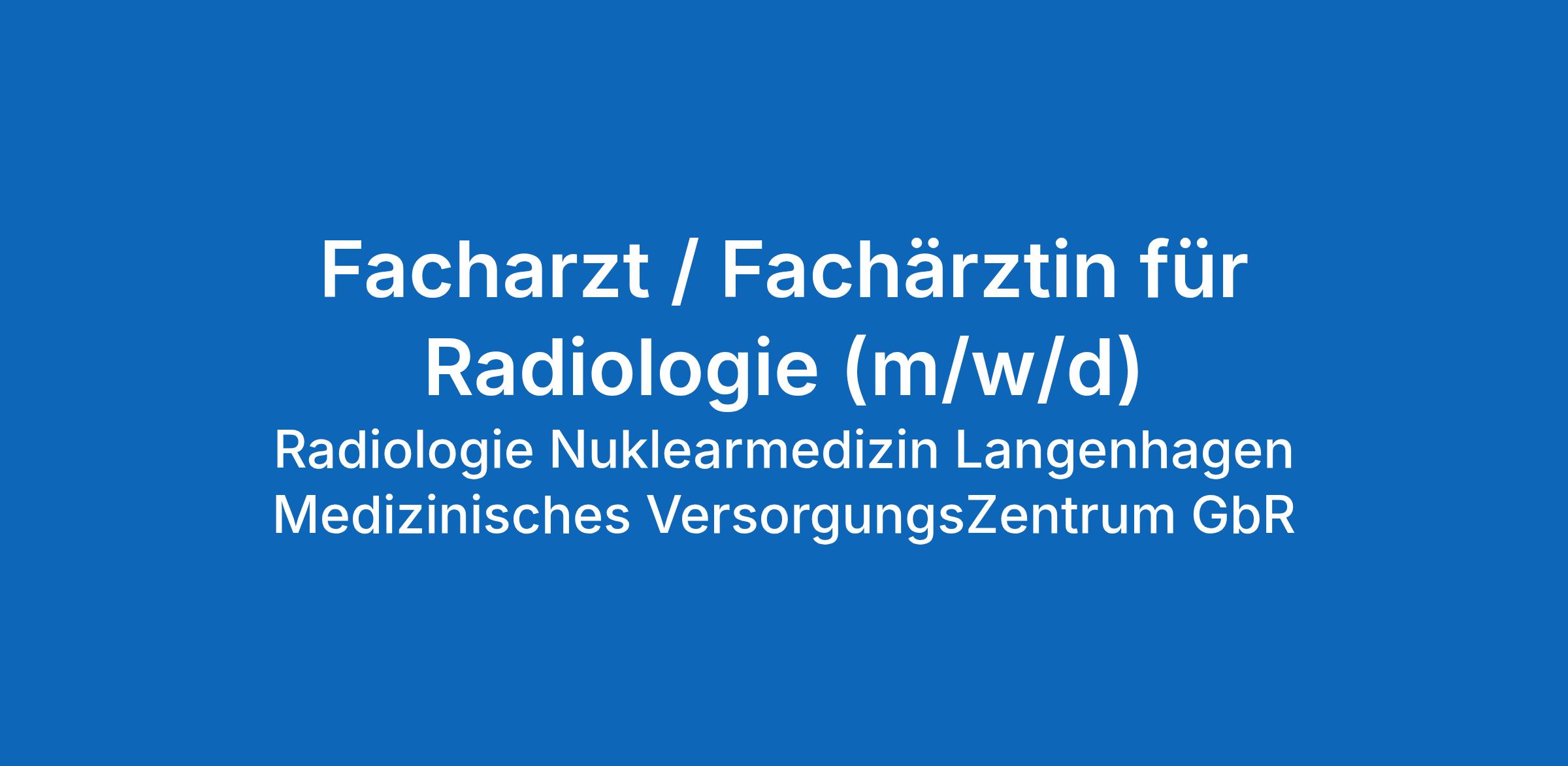 Facharzt / Fachärztin für Radiologie (m/w/d) – Vollzeit