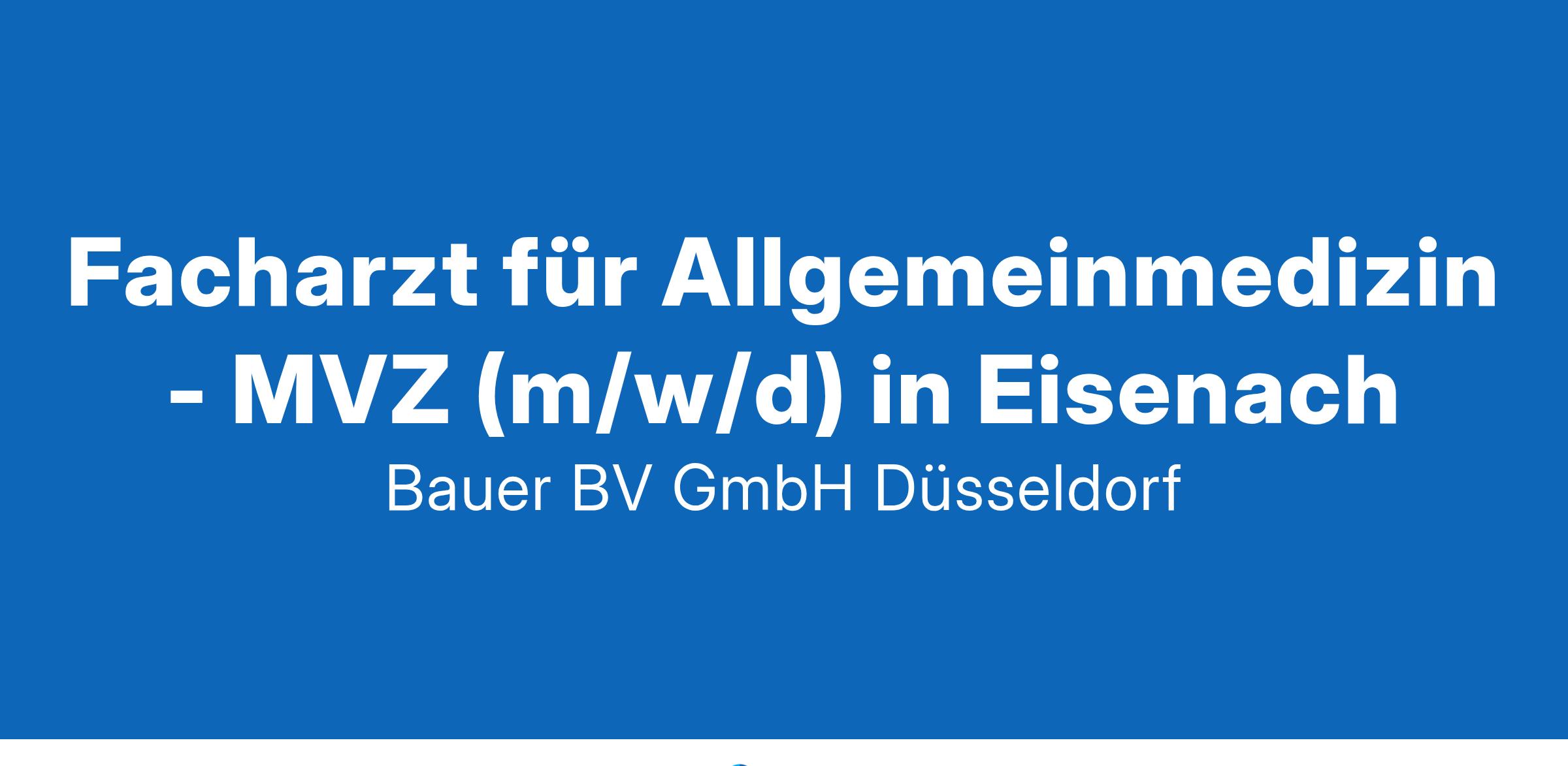 Anstellungsart(en): VollzeitIhr neuer Arbeitsplatz:Medizinisches Versorgungszentrum für Allgemeinmedizin im Raum Eisenach. Das MVZ behandelt alle gängigen Erkrankungen der Allgemeinmedizin.Ihre Vorteile:Modernes MVZInteressanter und vielseitiger ArbeitsplatzEigenständige LeitungFreundliches, interdisziplinär aufgestelltes TeamUnterstützung und Förderung von WeiterbildungenAttraktive VergütungUnbefristete Festanstellung mit PerspektiveIhr Profil:Facharzt für Allgemeinmedizin oder Innere Medizin (m/w/d)Fundierte und breite FAchkenntnisseDeutsche Approbation und Sprachkenntnisse auf C1-NiveauEngagement und TeamfähigkeitIhr Ansprechpartner:Bauer B+V Personalberatung