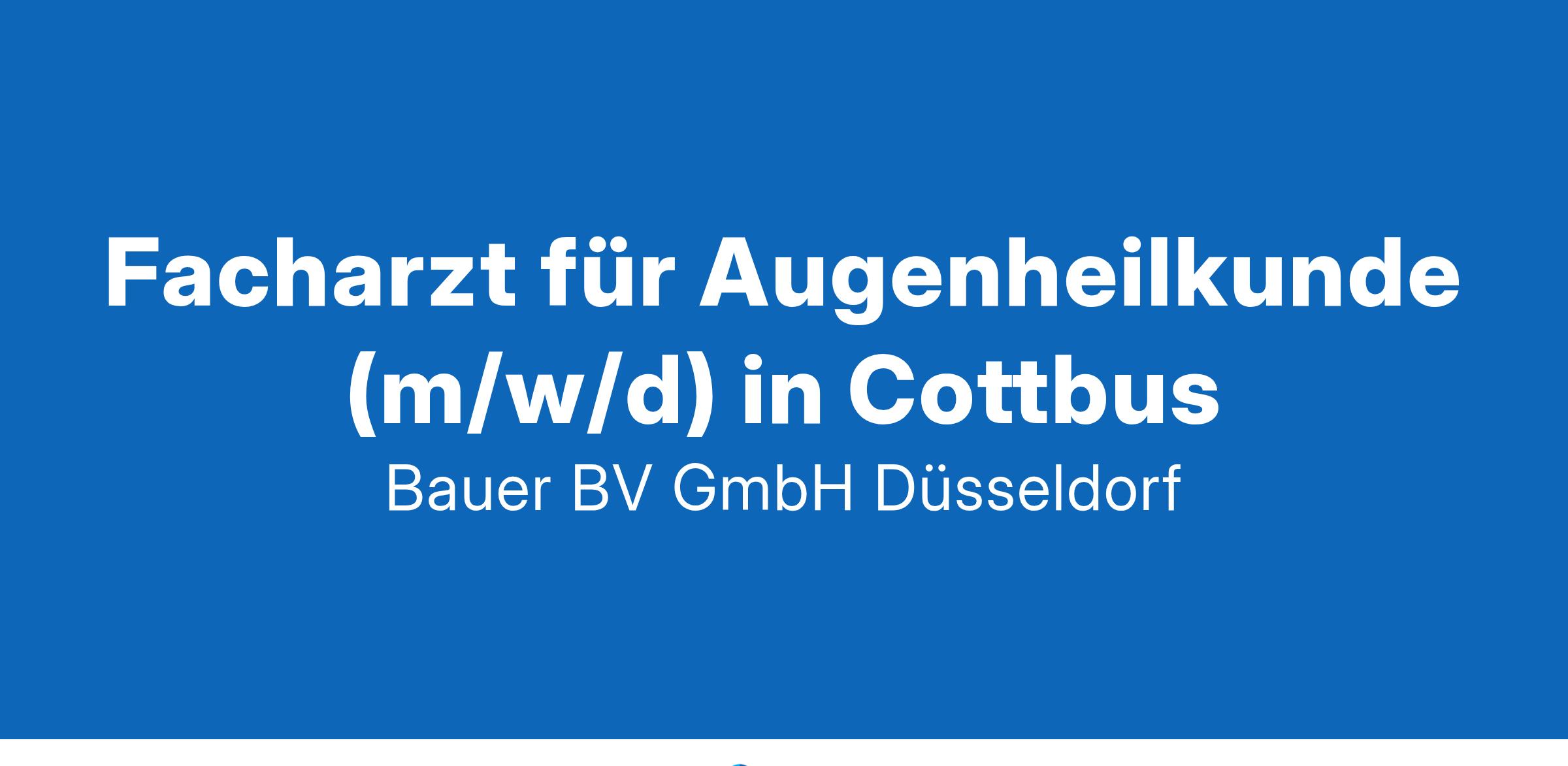 Anstellungsart(en): Teilzeit - flexibel, VollzeitUnser Kunde:Verbund von Medizinischen Versorgungszentren mit mehr als 14 Fachrichtungen. Für den Standort Cottbus suchen wir für den nächstmöglichen Zeitpunkt einen erfahrenen Facharzt für Augenheilkunde (m/w/d).Ihre Vorteile:Ein attraktiver und hochmoderner ArbeitsplatzEine ambulante Tätigkeit im MVZ mit eigenem PatientenstammUnterstützung und Förderung von WeiterbildungenAttraktive DotierungUnbefristeter Arbeitsvertrag in Voll- oder TeilzeitIhr Profil:Facharzt für Augenheilkunde (m/w/d)Erfahrungen in der ambulanten Tätigkeit wünschenswertEngagement und TeamfähigkeitIhr Ansprechpartner:Bauer B+V Personalberatung