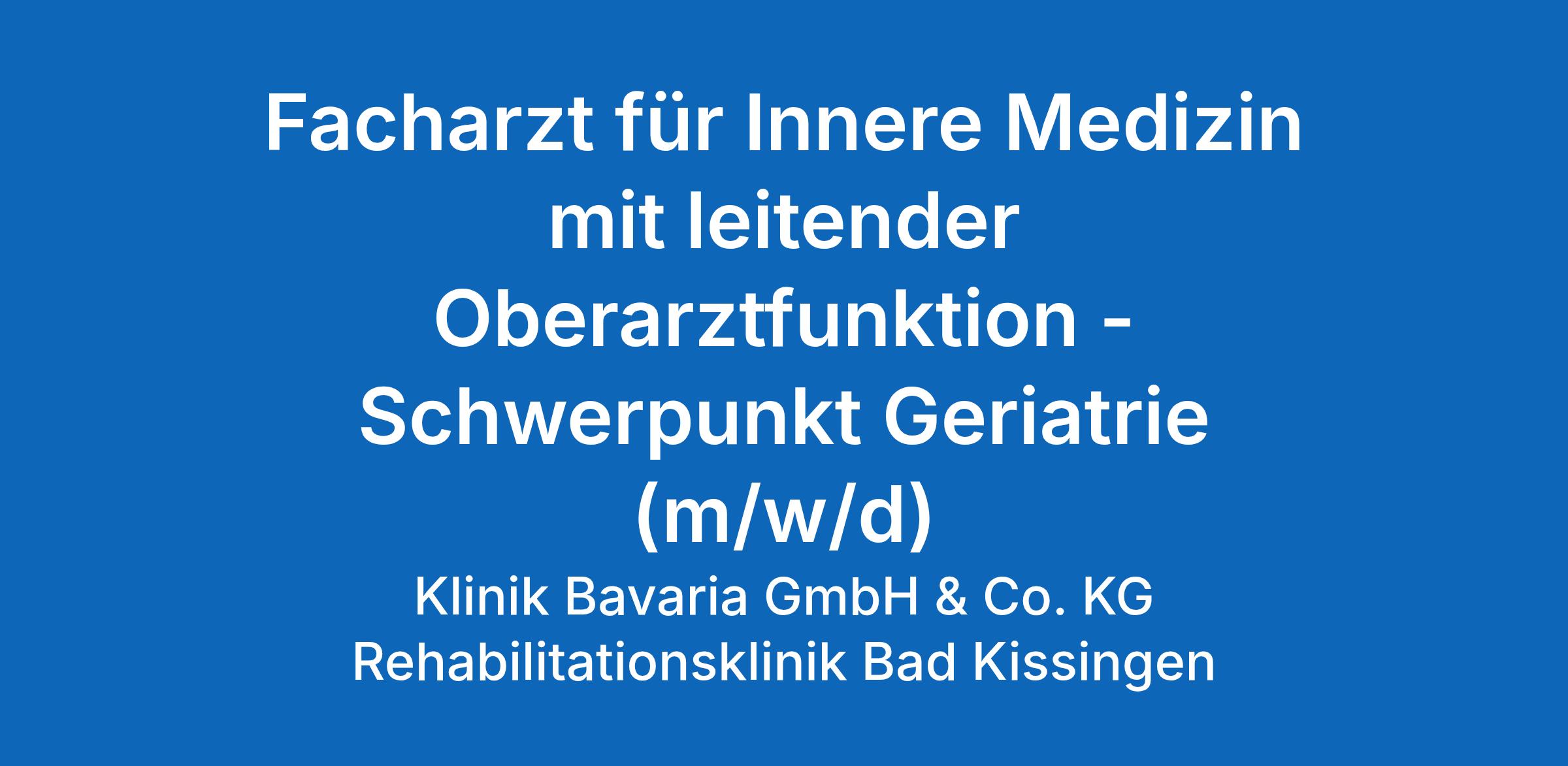 Facharzt für Innere Medizin mit leitender Oberarztfunktion - Schwerpunkt Geriatrie (m/w/d)