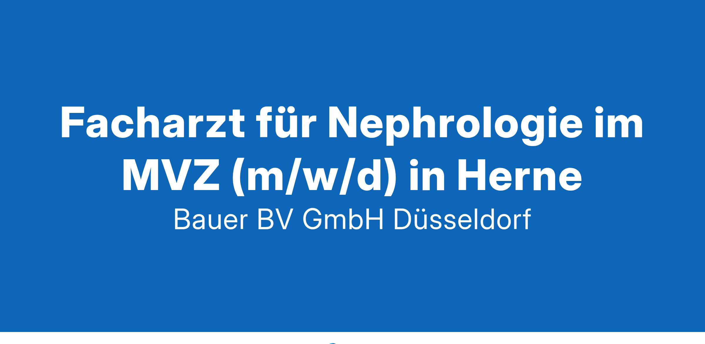 Anstellungsart(en): Teilzeit, VollzeitIhr neuer Arbeitsplatz:Das Medizinisches Versorgungszentrum für Nephrologie im Raum Herne behandelt das gesamte Spektrum von Nierenerkrankungen inkl. Dialysebehandlungen.Ihre Vorteile:Modernes MVZ mit entsprechender DialysetechnikInteressante und abwechslungsreiche TätigkeitDiagnostik und Therapie akuter und chronischer NierenerkrankungenAmbulante DialysebehandlungTransplantationsvorbereitung und -nachsorgeUmfangreiche Fort- und WeiterbildungsmöglichkeitenKollegiales BetriebsklimaAttraktive VergütungUnbefristete FestanstellungIhr Profil:Facharzt (m/w/d) für Innere Medizin und NephrologieDeutsche Approbation & Sprachkenntnisse C1Fundierte Kenntnisse im FachbereichEngagement und TeamfähigkeitIhr Ansprechpartner:Bauer B+V Personalberatung