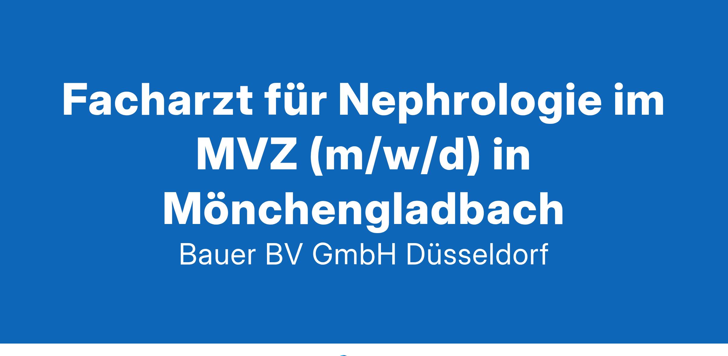 Anstellungsart(en): Teilzeit, VollzeitIhr neuer Arbeitsplatz:Das Medizinisches Versorgungszentrum für Nephrologie im Raum Mönchengladbach behandelt das gesamte Spektrum von Nierenerkrankungen inkl. Dialysebehandlungen.Ihre Vorteile:Modernes MVZ mit entsprechender DialysetechnikInteressante und abwechslungsreiche TätigkeitDiagnostik und Therapie akuter und chronischer NierenerkrankungenAmbulante DialysebehandlungTransplantationsvorbereitung und -nachsorgeUmfangreiche Fort- und WeiterbildungsmöglichkeitenKollegiales BetriebsklimaAttraktive VergütungUnbefristete FestanstellungIhr Profil:Facharzt (m/w/d) für Innere Medizin und NephrologieDeutsche Approbation & Sprachkenntnisse C1Fundierte Kenntnisse im FachbereichEngagement und TeamfähigkeitIhr Ansprechpartner:Bauer B+V Personalberatung