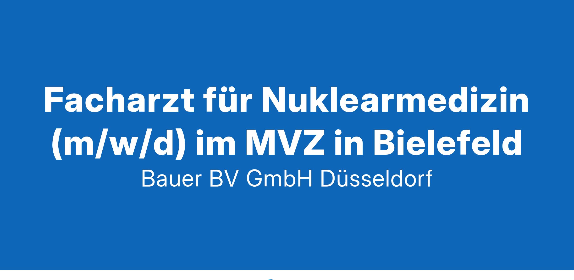 Anstellungsart(en): VollzeitIhr neuer Arbeitsplatz:MVZ für Nuklearmedizin eines akademisches Lehrkrankenhaus mit rund 450 Betten im Raum Bielefeld. Im Rahmen einer Neuausrichtung ist neben der Erweiterung des medizinischen Spektrums die technische Erweiterung mit SPECT-Kamera und SPECT/CT vorgesehen, einhergehend mit der grundlegenden Modernisierung inkl. vollständiger digitaler Anbindung.Ihre Vorteile:Abwechslungsreiche und verantwortungsvolle TätigkeitAktive Mitgestaltung des medizinischen SpektrumsUnterstützung bei Fort- und Weiterbildungen in Ihrem FachgebietFreundliches TeamAttraktive VergütungUnbefristete FestanstellungIhr Profil:Facharzt für Nuklearmedizin (m/w/d)Fundierte Kenntnisse im FachbereichEngagement und TeamfähigkeitIhr Ansprechpartner:Bauer B+V Personalberatung