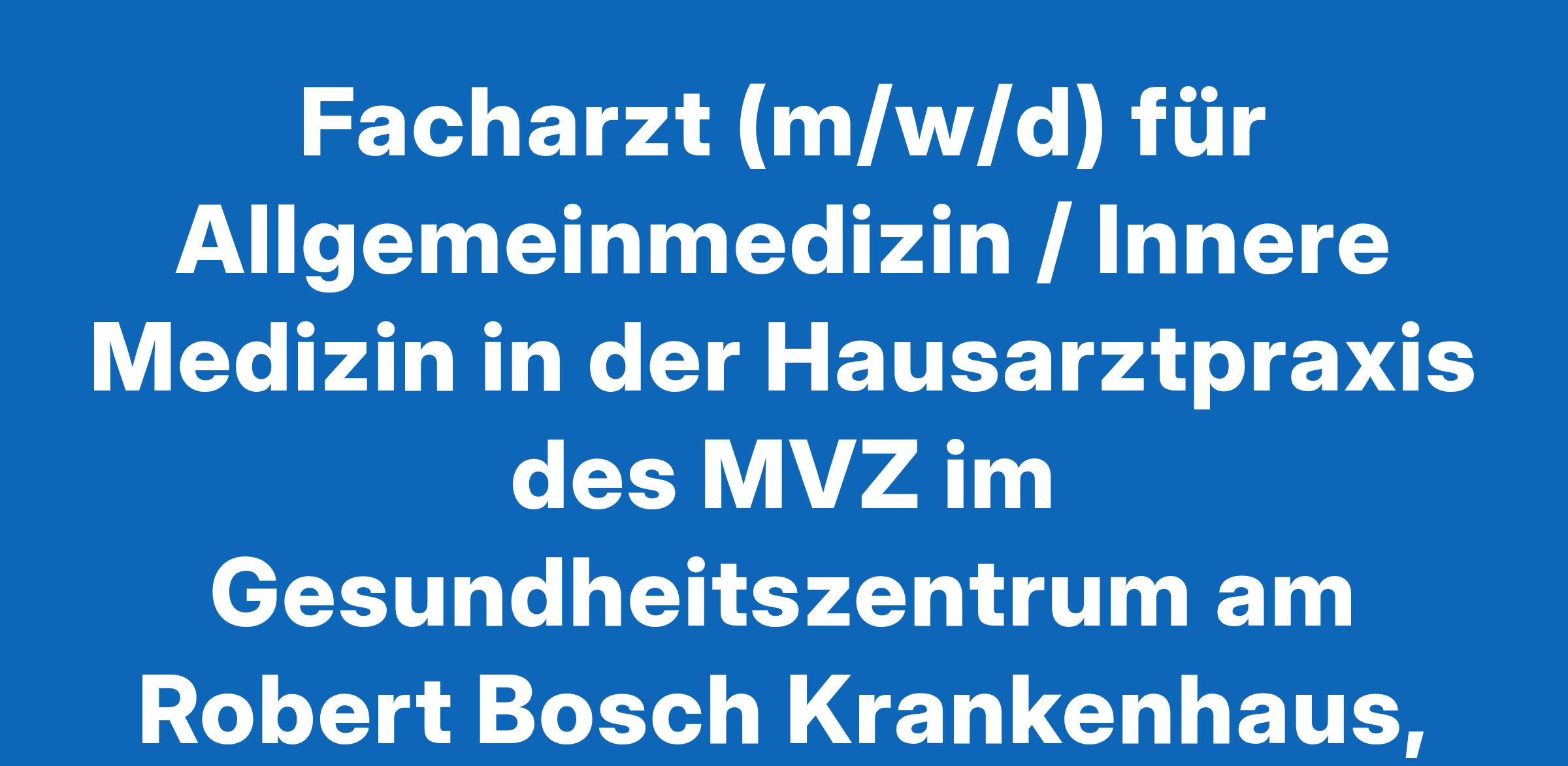 Facharzt (m/w/d) für Allgemeinmedizin / Innere Medizin in der Hausarztpraxis des MVZ im Gesundheitszentrum am Robert Bosch Krankenhaus, Standort CityVollzeit