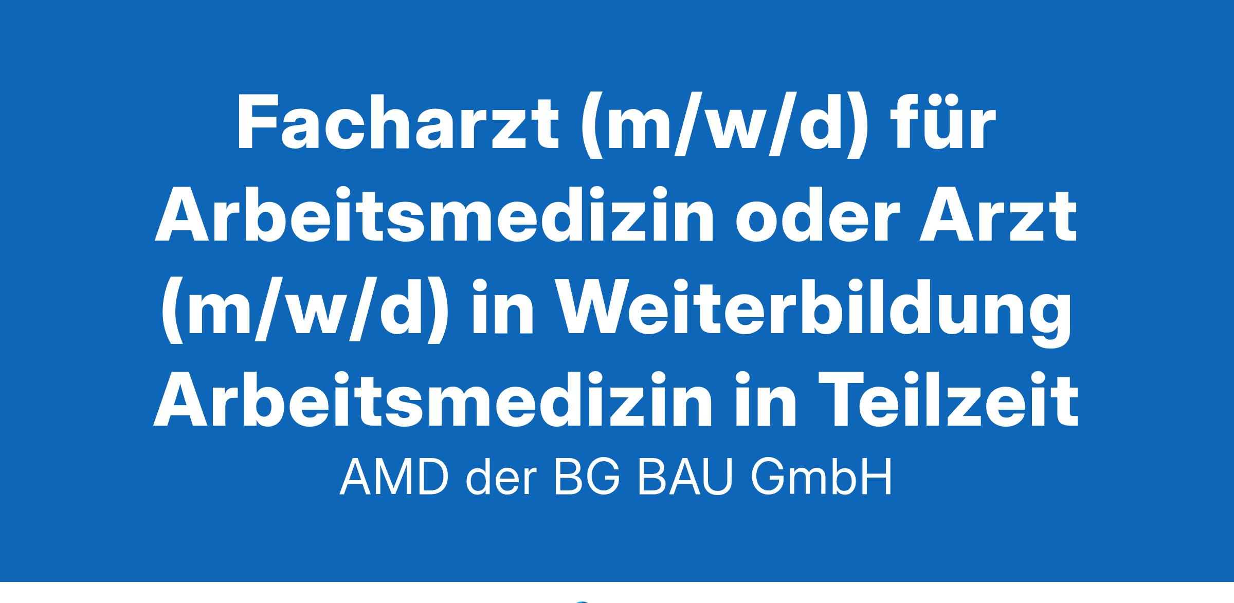 Zeit für den Menschen – Zeit zum Leben. Wir bieten Ihnen: Vereinbarkeit von Familie und Beruf Flexible Arbeitszeit ohne Nacht-, Bereitschafts- und Wochenenddienst 6 Wochen Jahresurlaub, 4 Flextage pro Jahr und bis zu 16 Gleittage Fester Kundenstamm mehr Zeit für ärztliche Tätigkeiten - ohne Akquise Attraktive Vergütung Dienstfahrzeug - auch zur privaten Nutzung, Möglichkeit zur Teilnahme am Bonussystem, Vermögenswirksame Leistungen (VWL) Sicherheit des öffentlichen Dienstes mit einer zusätzlichen Altersversorgung (VBL) (Tochter der BG BAU) Legen Sie Wert auf eine gute Vereinbarkeit von Familie und Beruf? Wünschen Sie sich wieder mehr Zeit für ärztliche Tätigkeiten - ohne Akquise? Kommen Sie zu uns ins Team! Wir sind der Arbeitsmedizinische Dienst der Baubranche. Der AMD der BG BAU betreut bundesweit in seinen über 60 Zentren und im Außendienst die Versicherten des Bauhaupt- und Baunebengewerbes sowie große Reinigungs- und Serviceunternehmen. Wir bieten unseren Beschäftigten einen sicheren Arbeitsplatz mit Zukunftsperspektiven und Weiterbildungsmöglichkeiten sowie flexible Arbeitszeiten durch unser Gleitzeitmodell und eine attraktive betriebliche Altersvorsorge (VBL). Setzen Sie sich gemeinsam mit uns ein – für Sicherheit, Gesundheit und Prävention in einer spannenden Branche! Für unseren Standort Leonberg suchen wir einen Facharzt (m/w/d) für Arbeitsmedizin oder Arzt (m/w/d) in Weiterbildung Arbeitsmedizin in Teilzeit (25 Std./Woche) Sie... sind präventiv tätig, betreuen und beraten unsere Mitgliedsbetriebe zum Arbeits- und Gesundheitsschutz arbeiten in einem kollegialen Team in unserem arbeitsmedizinischen Zentrum und im Außendienst mit qualifiziertem Assistenzpersonal erkennen arbeitsbedingte Erkrankungen frühzeitig und helfen diese zu verhindern sind Berater (m/w/d) beim betrieblichen Gesundheitsmanagement in Unternehmen wirken bei der individuellen beruflichen und medizinischen Rehabilitation mit Ihr Profil Ausbildung zum Facharzt (m/w/d) für Arbeitsmedizin oder Arzt (m/w/d) in Weiterbildung Arbeitsmedizin mit mind. 24 Monaten Weiterbildungszeit in der Inneren Medizin/Allgemeinmedizin oder patientennahen Versorgung Sicheres und positives Auftreten Kontaktfreudigkeit, Teamfähigkeit und Engagement Pkw-Führerschein Die Stelle ist ab sofort in Teilzeit (25 Std./Woche) zu besetzen. Schwerbehinderte Bewerbende werden bei gleicher Eignung und Qualifikation besonders berücksichtigt. Das klingt nach einer interessanten Aufgabe für Sie? Dann freuen wir uns über Ihre Bewerbung auf unserer Karriereseite www.amd.bgbau.de/karriere unter Angabe Ihrer Gehaltsvorstellung. Als Ansprechperson in fachlichen Fragen steht Ihnen Frau Dr. Wahl-Wachendorf unter der Telefonnummer +49 30 85781-521 gerne zur Verfügung. www.amd.bgbau.de