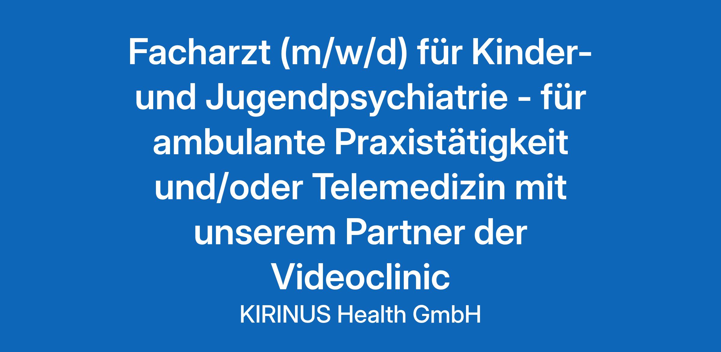 Facharzt (m/w/d) für Kinder- und Jugendpsychiatrie - für ambulante Praxistätigkeit und/oder Telemedizin mit unserem Partner der Videoclinic