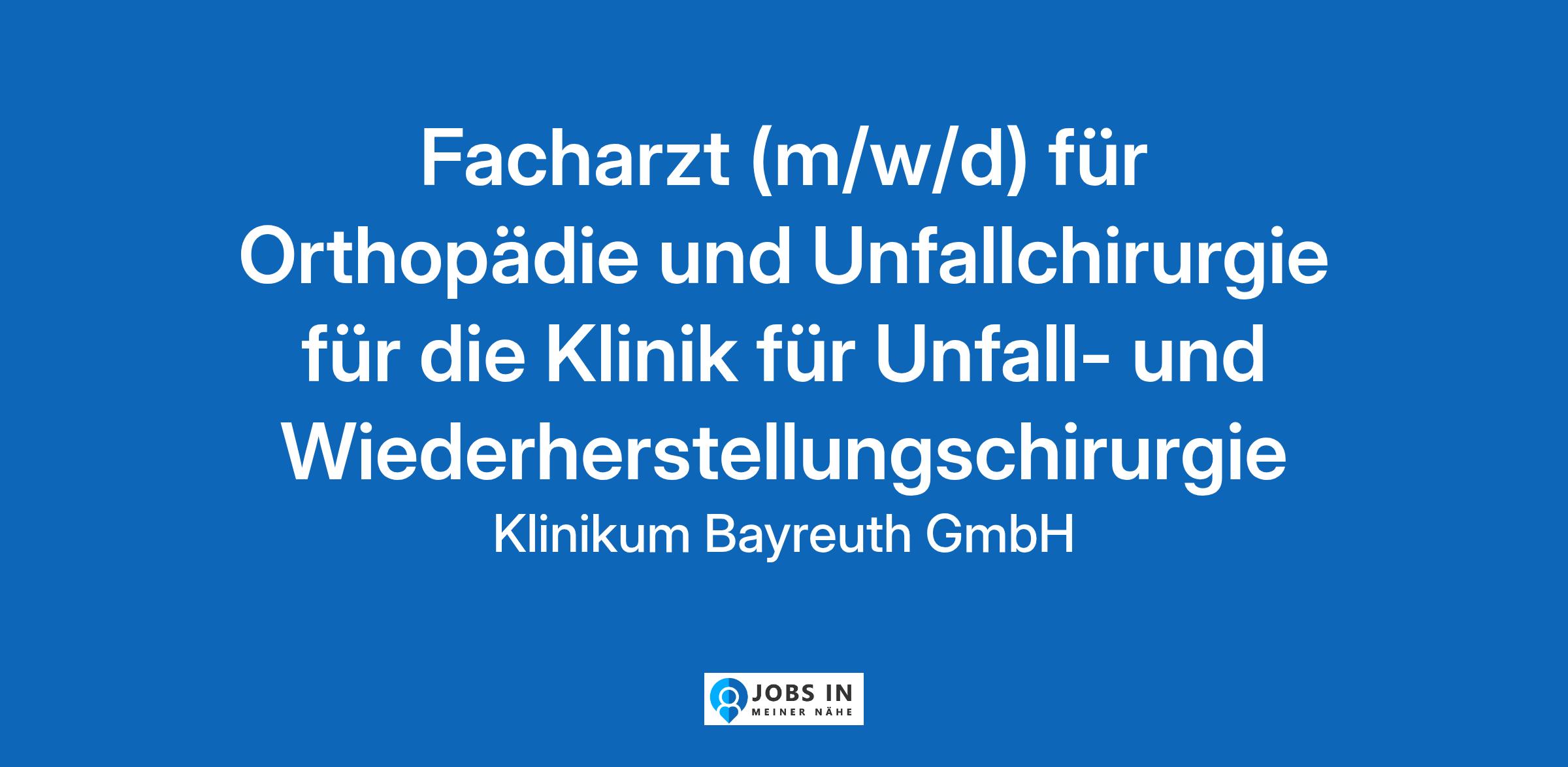 Die Klinikum Bayreuth GmbH erfüllt mit 27 Fachkliniken, 978 Betten und rund 3.500 Mitarbeitenden den Standard der Maximalversorgung und ist der führende Medizin-Dienstleister in Nordostoberfranken. Zudem ist die Klinikum Bayreuth GmbH mit ihren zwei Standorten in Bayreuth die überregional renommierte Anlaufstelle für Patientinnen und Patienten, die auf besonders hochwertige Versorgung Wert legen. Gemeinsam mit der Friedrich-Alexander-Universität Erlangen-Nürnberg, dem Universitätsklinikum Erlangen und der Universität Bayreuth steht die Klinikum Bayreuth GmbH für den Medizincampus Oberfranken. Hier absolvieren Medizin-Studierende den Klinischen Teil ihres Studiums. Damit bietet die Klinikum Bayreuth GmbH weit über die Region hinaus Diagnostik, Therapie, Forschung und Lehre auf universitärem Niveau und verbindet dies mit den Bedürfnissen und Anforderungen der Bevölkerung in Oberfranken nach einer umfassenden Gesundheitsversorgung.
