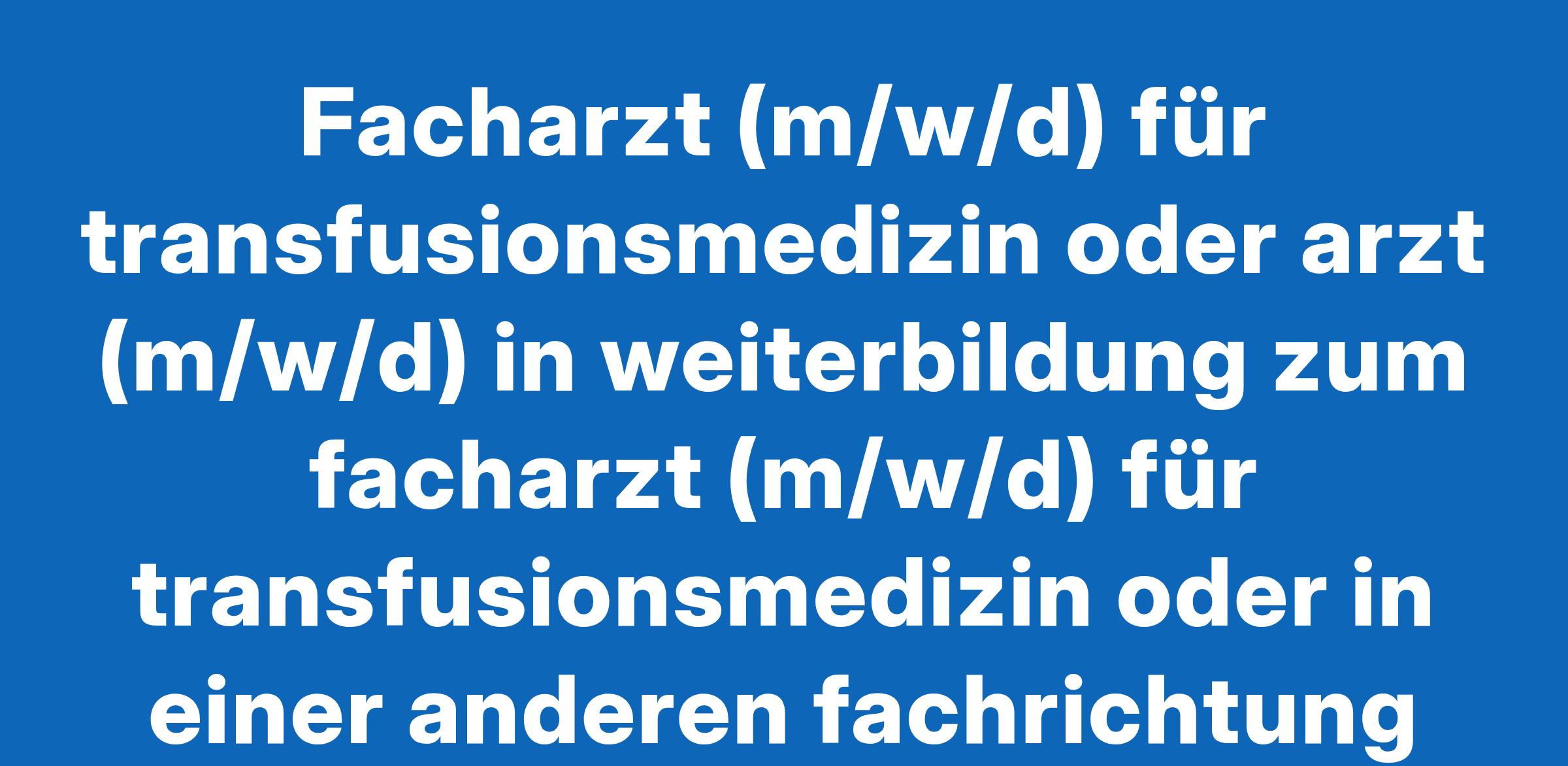 Facharzt (m/w/d) für transfusionsmedizin oder arzt (m/w/d) in weiterbildung zum facharzt (m/w/d) für transfusionsmedizin oder in einer anderen fachrichtung