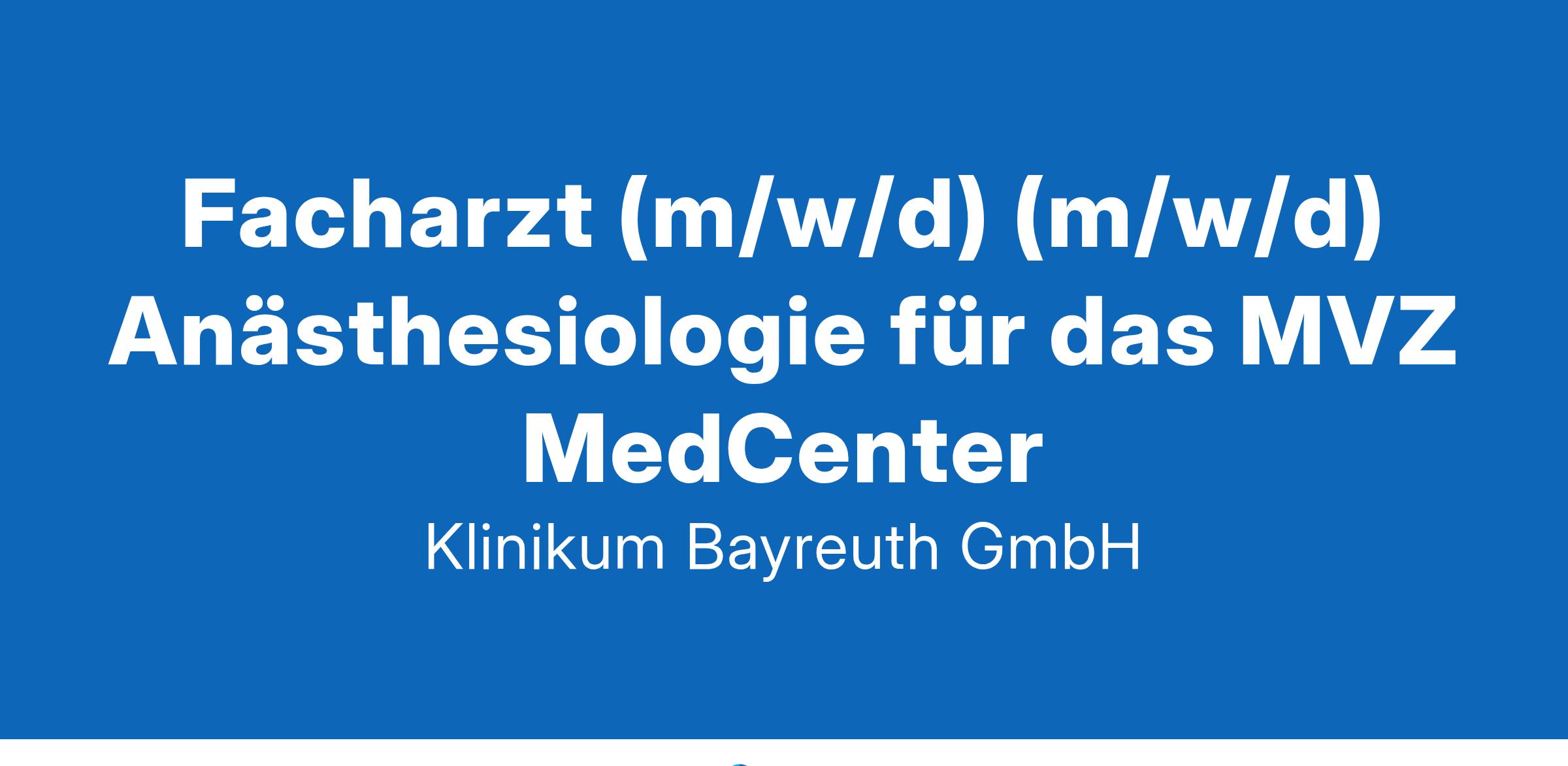 Facharzt (m/w/d) (m/w/d) Anästhesiologie für das MVZ MedCenter