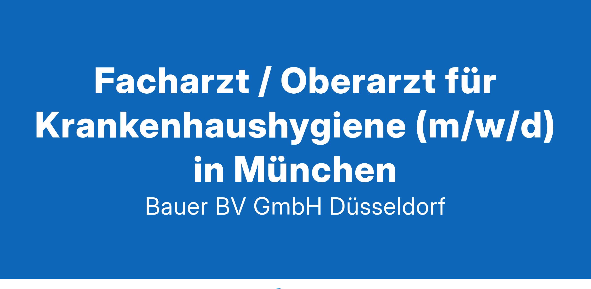 Anstellungsart(en): VollzeitIhr neuer Arbeitsplatz:Klinikum der Maximalversorgung in Bayern mit ca. 1.000 Betten. Die Klinik für Mikrobiologie, Labormedizin und Hygiene betreut alle Abteilungen des Hauses.Ihre Vorteile:Attraktiver Arbeitsplatz in einer modernen KlinikAnspruchsvolles AufgabengebietAnsprechpartnerIn für KrankenhaushygieneAntiinfektiva-BeratungTeilnahme an Hygiene- und ABS-SitzungenLeitung von speziellen HygieneprojektenDurchführung eigener ForschungsprojekteTätigkeit als DozentUnterstützung für Fort- und Weiterbildungsmaßnahmen31 Tage UrlaubAttraktive VergütungUnbefristete Festanstellung mit PerspektiveIhr Profil:Facharzt (m/w/d) für Hygiene und Umweltmedizin oderFacharzt (m/w/d) mit Weiterbildung Krankenhaushygiene oderFacharzt (m/w/d) mit Interesse an der Weiterbildung KrankenhaushygienePromotionGerne Erfahrung im Betreich Antibiotic Stewardship (ABS)Ihr Ansprechpartner:Bauer B+V Personalberatung