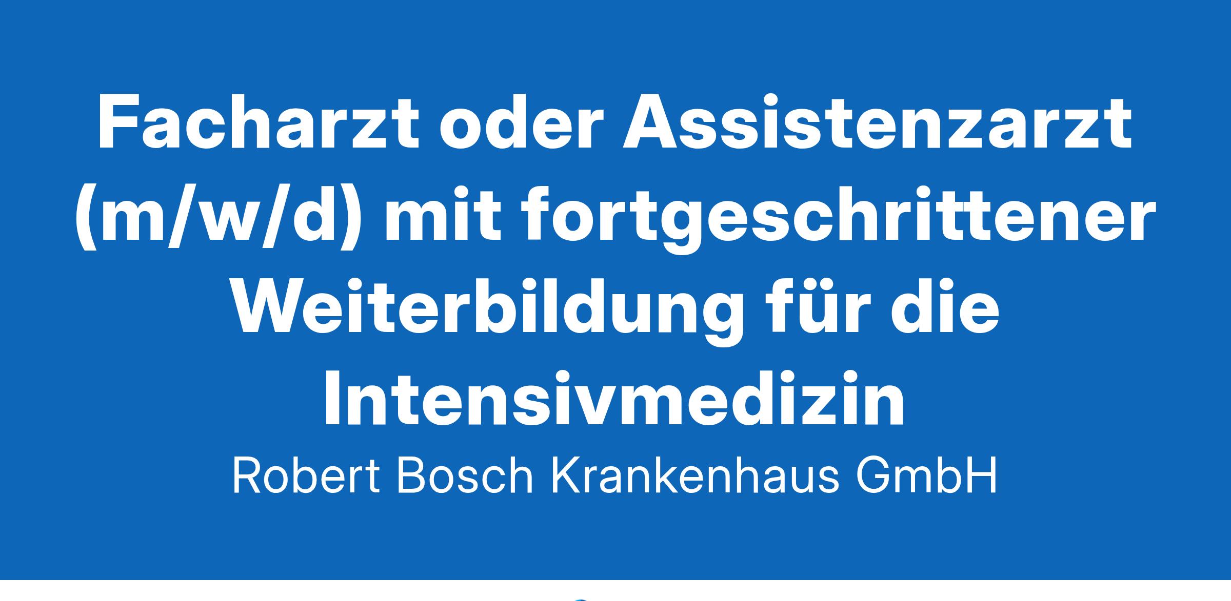 Beschäftigungsumfang: VollzeitUnternehmensbeschreibungDas Robert-Bosch-Krankenhaus ist ein von der Robert-Bosch-Stiftung getragenes Krankenhaus der Zentralversorgung mit Funktionen der Maximalversorgung an drei Standorten. Mit 1.041 Betten nehmen das RBK, seine Standorte Klinik Charlottenhaus und RBK Lungenzentrum Stuttgart sowie die Klinik für Geriatrische Rehabilitation im Jahr bis zu 40.000 Patienten stationär auf. Zum Krankenhausbetrieb mit über 3.000 Mitarbeitenden gehören 17 Fachabteilungen in verschiedenen medizinischen Zentren, ein Bildungszentrum und Forschungsinstitute. Für Mitarbeitende bieten sich in dieser Struktur vielfältige Entwicklungsmöglichkeiten.StellenbeschreibungDie Intensivmedizin wird von den Abteilungen für Anästhesie und operative Intensivmedizin (Chefarzt Prof. Dr. med. C. Wunder), Herz-und Gefäßchirurgie (Chefarzt Prof. Dr. med. U. Franke) und der Abteilung für Kardiologie und Angiologie (Chefarzt Prof. Dr. med. R. Bekeredijan) geführt. Verteilt auf drei Stationen stehen insgesamt 41 »high-care« Intensivbetten zur Verfügung. Hier kann das gesamte Spektrum der modernen Intensivmedizin abgebildet werden, inklusive aller gängigen Organunterstützungsverfahren (Dialyse; ECMO; Plasmaaustausch etc.). Zusätzlich gibt es eine zertifizierte Weaningstation im RBK Lungenzentrum Stuttgart (Chefarzt Prof. Dr. C. Neurohr).