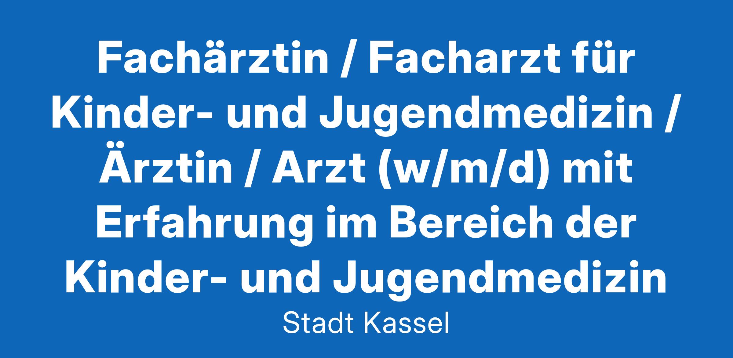 Stadt Kassel Personal- und Organisationsamt 34112 Kassel Die Stadt Kassel ist mit ca. 208.000 Einwohnerinnen und Einwohnern das Zentrum in Nordhessen und Deutschlands glücklichste Großstadt. Wir gehören zu den größten Arbeitgebern dieser Region und verstehen uns als modernes Dienstleistungsunternehmen, dessen Mitarbeiterinnen und Mitarbeiter sich freundlich und kompetent um die Belange der Bürgerinnen und Bürger unserer Stadt kümmern. Wir suchen für das Gesundheitsamt Region Kassel – Abteilung Kinder- und Jugendgesundheit – eine Fachärztin / einen Facharzt (w/m/d) für Kinder- und Jugendmedizin oder eine Ärztin / einen Arzt (w/m/d) mit Erfahrung im Bereich der Kinder- und Jugendmedizin mit einer wöchentlichen Arbeitszeit zwischen 19,5 und 39 Stunden. Das Gesundheitsamt Region Kassel ist ein großer Akteur im Bereich des Öffentlichen Gesundheitsdienstes für Stadt und Landkreis Kassel. Wir beschäftigen uns mit der Bevölkerungsmedizin als wichtige Säule der Gesundheitsversorgung. Unter einem Dach arbeitet ein kollegiales Team aus den Bereichen Medizin und Umweltmedizin, Soziale Arbeit, Hygiene, Selbsthilfe und Verwaltung gemeinsam für eine gesunde Region Kassel. Gesundheitsschutz, Gesundheitsförderung und gesundheitliche Chancengleichheit sind die großen Aufgaben des Öffentlichen Gesundheitsdienstes, für die wir uns hier in Kassel täglich einsetzen. Für den Kinder- und Jugendgesundheitsdienst suchen wir ärztliche Kolleginnen und Kollegen, die Kinder mit einer Entwicklungsverzögerung oder einer Behinderung zu Fragestellungen der Eingliederungshilfe als Unterstützung in der Kindertagesstätte und in der Familie begutachten und die Familien beraten, um so an der Gestaltung einer Unterstützung und Förderung dieser Kinder mitzuarbeiten. Dafür brauchen wir Ärztinnen und Ärzte mit viel Engagement, fachlicher Expertise und gutem Urteilsvermögen. Ihre Aufgaben Erstellen von Gutachten für Kinder und Jugendliche zu überwiegend sozialmedizinischen und psychiatrischen Fragestellungen sowie Beraten der beteiligten Personen und Institutionen Durchführen von Einschulungsuntersuchungen Kooperieren mit Institutionen und komplementären Einrichtungen Mitwirken bei Maßnahmen des Amtes im Hinblick auf die Gesundheitsförderung und -planung in zeitlich geringem Umfang Teilnehmen am Krisendienst des Sozialpsychiatrischen Dienstes zu den regulären Tages-Dienstzeiten des Gesundheitsamtes Region Kassel (montags bis freitags) sowie am ärztlichen infektiologischen Hintergrunddienst des Gesundheitsamtes auch außerhalb der regulären Tages-Dienstzeiten Sie möchten gern mehr erfahren? Dann nutzen Sie die Gelegenheit und suchen den Kontakt zu Dr. Britta Röper, Gesundheitsamt Region Kassel, Telefon 0561 787 1900. Ihr Profil abgeschlossenes Studium der Humanmedizin mit der deutschen Approbation als Ärztin / Arzt Weiterbildung zur Fachärztin / zum Facharzt für Kinder- und Jugendmedizin oder mehrjährige Berufserfahrung in diesem Bereich leistungsbereite, aufgeschlossene Persönlichkeit mit sicherem Auftreten Durchsetzungsvermögen und soziale Kompetenz Bereitschaft und Fähigkeit zur Arbeit im Team Eigenverantwortung sowie Organisations- und Planungsfähigkeiten Fahrerlaubnis der Klasse B sowie die Bereitschaft, den eigenen vorhandenen PKW für dienstliche Zwecke zu nutzen Unser Angebot Es erwartet Sie eine moderne und lebendige Arbeitsumgebung. Sie arbeiten in einem persönlich wertschätzenden, effektiven und unterstützenden Team und erhalten Entgelt bis zur Entgeltgruppe 15 nach dem Tarifvertrag für den öffentlichen Dienst (TVöD). Weiterhin gewähren wir - abhängig von den persönlichen Voraussetzungen - eine tarifliche - und eine außertarifliche Zulage. Darüber hinaus profitieren Sie von den Sozialleistungen und der Zusatzversorgung des öffentlichen Dienstes. Sie haben die Möglichkeit, bedarfsorientierte Fortbildungen und individuelle Personalentwicklungsmaßnahmen zu absolvieren und sich beruflich weiter zu qualifizieren. Weiterhin bieten wir Ihnen an, eine Nebentätigkeit auszuüben. Grundsätzlich besteht die Möglichkeit der späteren Übernahme in ein Beamtenverhältnis. Um Beruf und Familie zu vereinen, bieten wir vielfältige Formen der Teilzeitbeschäftigung und die Teilnahme an der flexiblen Arbeitszeit (Gleitzeitregelung) sowie grundsätzlich die Möglichkeit der Nutzung des Mobilen Arbeitens an. Mit dem attraktiven Jobticket können Sie vergünstigt das Deutschlandticket nutzen. Wir werden schwerbehinderte Bewerberinnen und Bewerber bei gleicher Qualifikation besonders berücksichtigen. Weiterhin verfolgen wir das Ziel der Chancengleichheit und freuen uns über Bewerbungen unabhängig von Ihrer Nationalität und Herkunft. Wenn Sie zu den Voraussetzungen Ihrer Bewerbung oder zu unserem Angebot Näheres erfahren möchten, können Sie sich gerne an Jasmin Dilcher, Personal- und Organisationsamt, Telefon 0561 787 2502, wenden. Haben wir Ihr Interesse geweckt? Sie können sich auf diese Stellenausschreibung ausschließlich online auf www.kassel.de/stellenangebote bewerben. Hierüber gelangen Sie ebenfalls zu dem dort bereitgestellten Bewerbungsformular. Informationen zum Datenschutz zum Zwecke Ihrer Bewerbung erhalten Sie auch unter www.kassel.de
