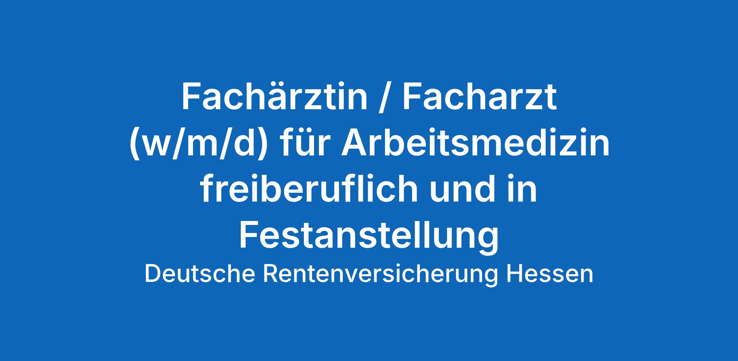 Fachärztin / Facharzt (w/m/d) für Arbeitsmedizin freiberuflich und in Festanstellung (EG 15 TV EntgO-DRV)