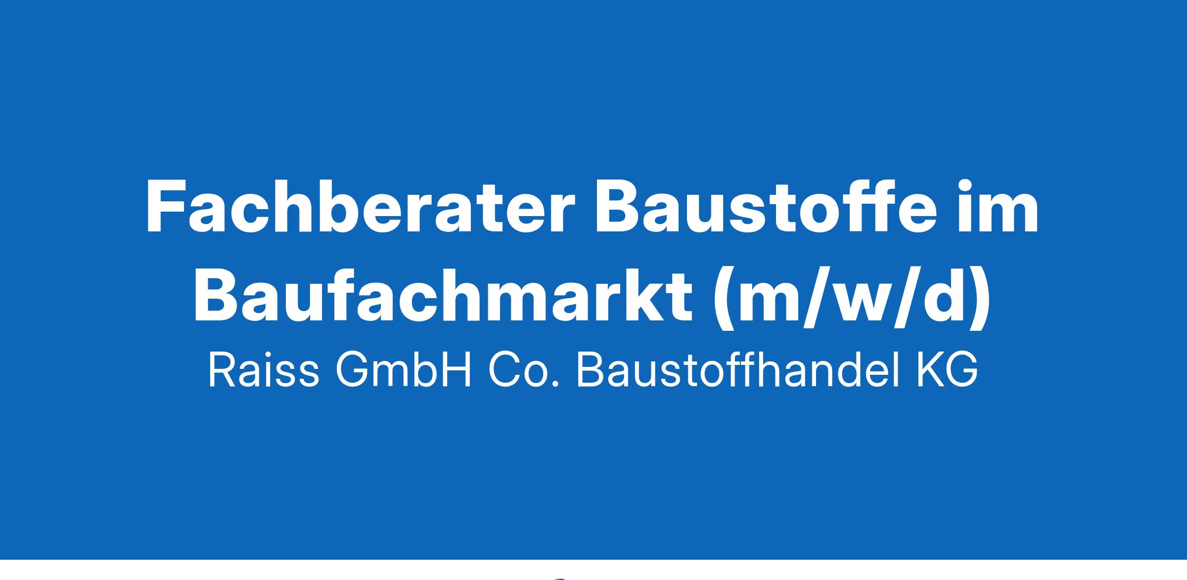 IST DER VERTRIEB IHRE LEIDENSCHAFT? Werden Sie Teamplayer in der Raiss-Gruppe als FACHBERATER BAUSTOFFE IM BAUFACHMARKT (M/W/D) in unserem dynamisch expandierenden Unternehmen in der Niederlassung 86470 Thannhausen. Ihr Aufgabengebiet: Fachliche Beratung & Verkauf von Baustoffen im Baufachmarkt Angebotserstellung und Auftragsabwicklung Betreuung von Abholkunden an der Baustofftheke Empfang von Kunden und Lieferanten Ihr Profil: Idealerweise eine abgeschlossene kaufmännische Ausbildung im Baustoffhandel oder der Baubranche, gerne auch Quereinsteiger aus den praktischen Bauberufen Gute Fachkenntnisse im Baustoffbereich und technisches Verständnis Eine freundliche, kontaktfreudige und motivierende Persönlichkeit Ihre Leidenschaft liegt im Kundenkontakt und Vertrieb. Wir erwarten von Ihnen selbstständiges Arbeiten, einen kooperativen Arbeitsstil, Freundlichkeit sowie ein hohes Engagement. Zudem sollten Sie sicher im Umgang mit EDV-Anwendungen, einschließlich der MS Office-Programme, sein. Freuen Sie sich auf interessante, abwechslungsreiche und anspruchsvolle Aufgaben in einem hoch motivierten Team! Wir bieten: Marktgerechte Bezahlung Unbefristete Anstellung Möglichkeiten zur Fortbildung Angenehme Arbeitsatmosphäre Moderner und sicherer Arbeitsplatz Attraktive Sozialleistungen / Mitarbeiter-Benefits Persönliche Entwicklungsmöglichkeiten Betriebliche Altersvorsorge Interesse? Dann senden Sie bitte Ihre vollständigen und aussagefähigen Bewerbungsunterlagen mit Angabe Ihres frühestmöglichen Eintrittstermins an david.buechele@raiss-baustoffffe.de oder bewerben Sie sich ganz einfach online über unser Bewerbungsformular. www.raiss-baustoffe.de E. Raiss GmbH + Co. Baustoffhandel KG • Röntgenstraße 2 • 86470 Thannhausen • Tel. 08281 79960-19 • david.buechele@raiss-baustoffe.de FACHHANDEL FÜR ERFOLGREICHE BAUPROJEKTE