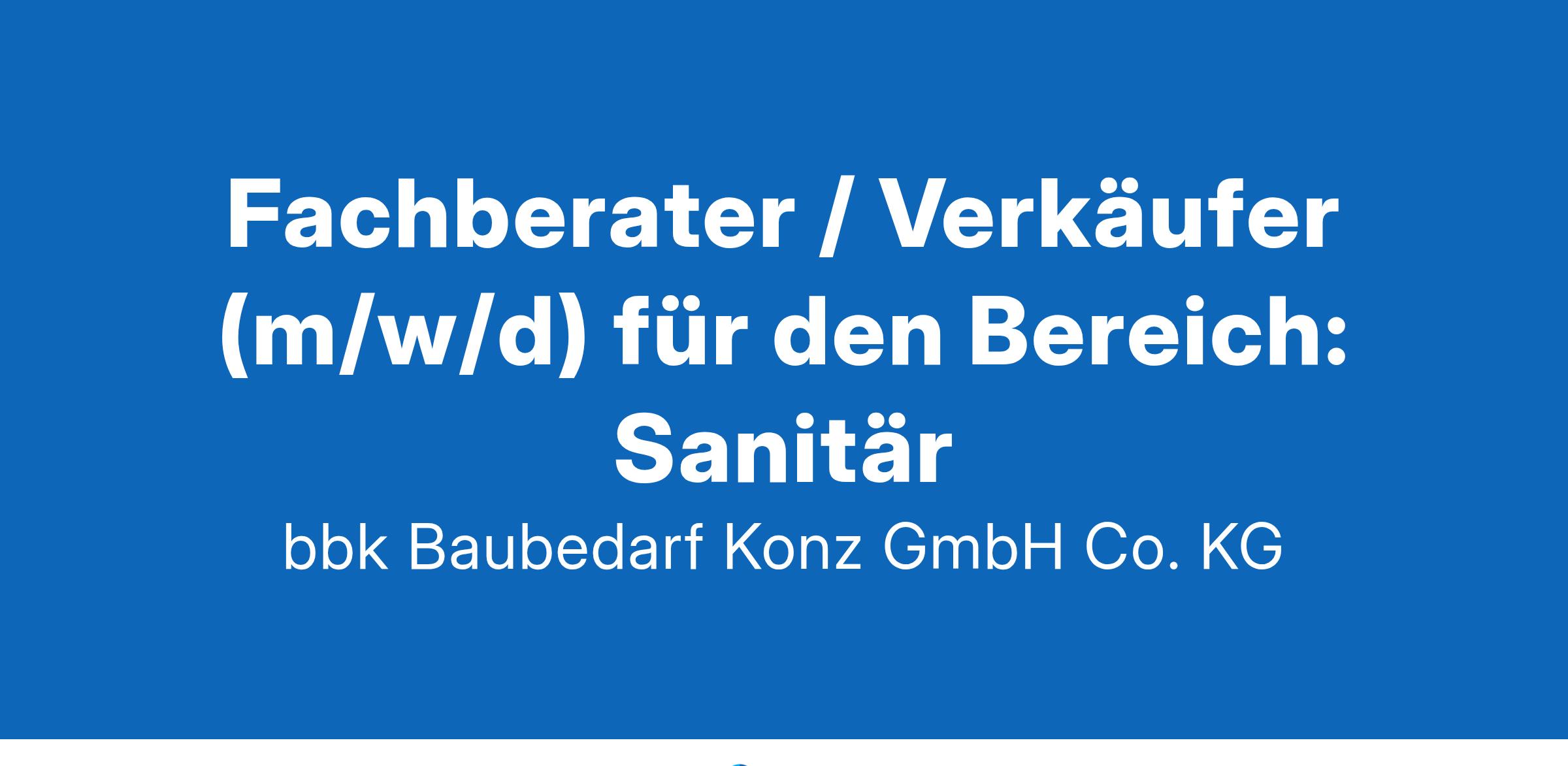 Fachberater / Verkäufer (m/w/d) für den Bereich: Sanitär Wir suchen Dich: Fachberater/Verkäufer (m/w/d) für den Bereich: Sanitär Wir bieten: 30 Tage Jahresurlaub Einen abwechslungsreichen Tätigkeitsbereich Sicherer Arbeitsplatz, unabhängig von Witterungsbedingungen Kommunikation auf Augenhöhe, Mitgestaltungsmöglichkeiten Sozialleistungen: Urlaubs- und Weihnachtsgeld, vermögenswirksame Leistungen, betriebliche Altersvorsorge, Mitarbeiterrabatt, Job Rad Familienfreundliche Gestaltung der Arbeitszeiten Arbeitszeit: Vollzeit/Teilzeit Einstellungsdatum: nach Vereinbarung/sofort Wir freuen uns auf Deine Bewerbung: bewerbung@bbk-hagebaumarkt.de bbk Hagebaumarkt Am Wiesenkreuz 2 54332 Wasserliesch