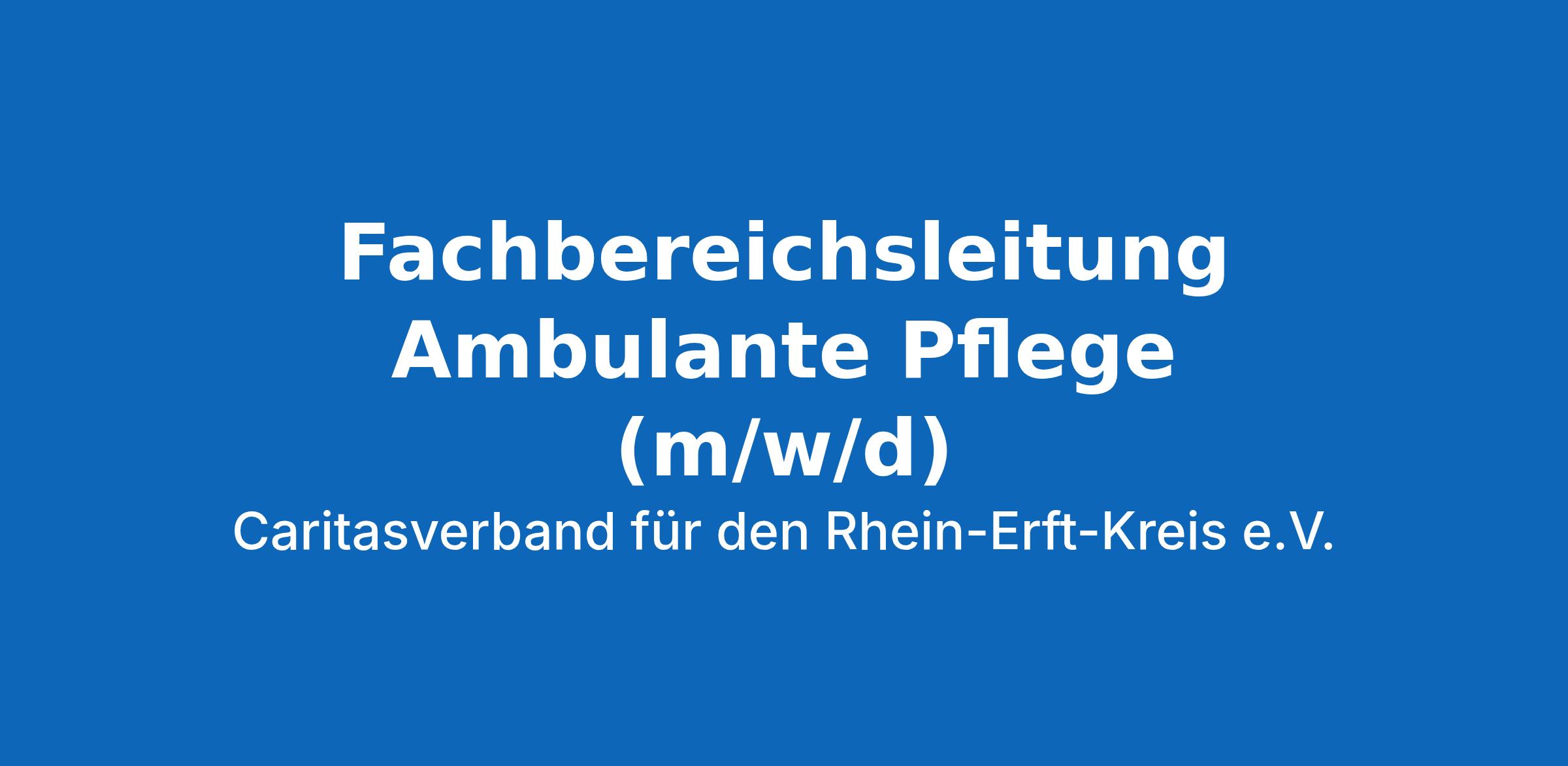 Bei der Caritas Rhein-Erft suchen wir eine Fachbereichsleitung Ambulante Pflege, die die strategische und operative Verantwortung für unseren ambulanten Pflegebereich mit ca. 300 Mitarbeitenden in 10 ambulanten Diensten, 2 Tagespflegen und der Pflegeberatung übernimmt.