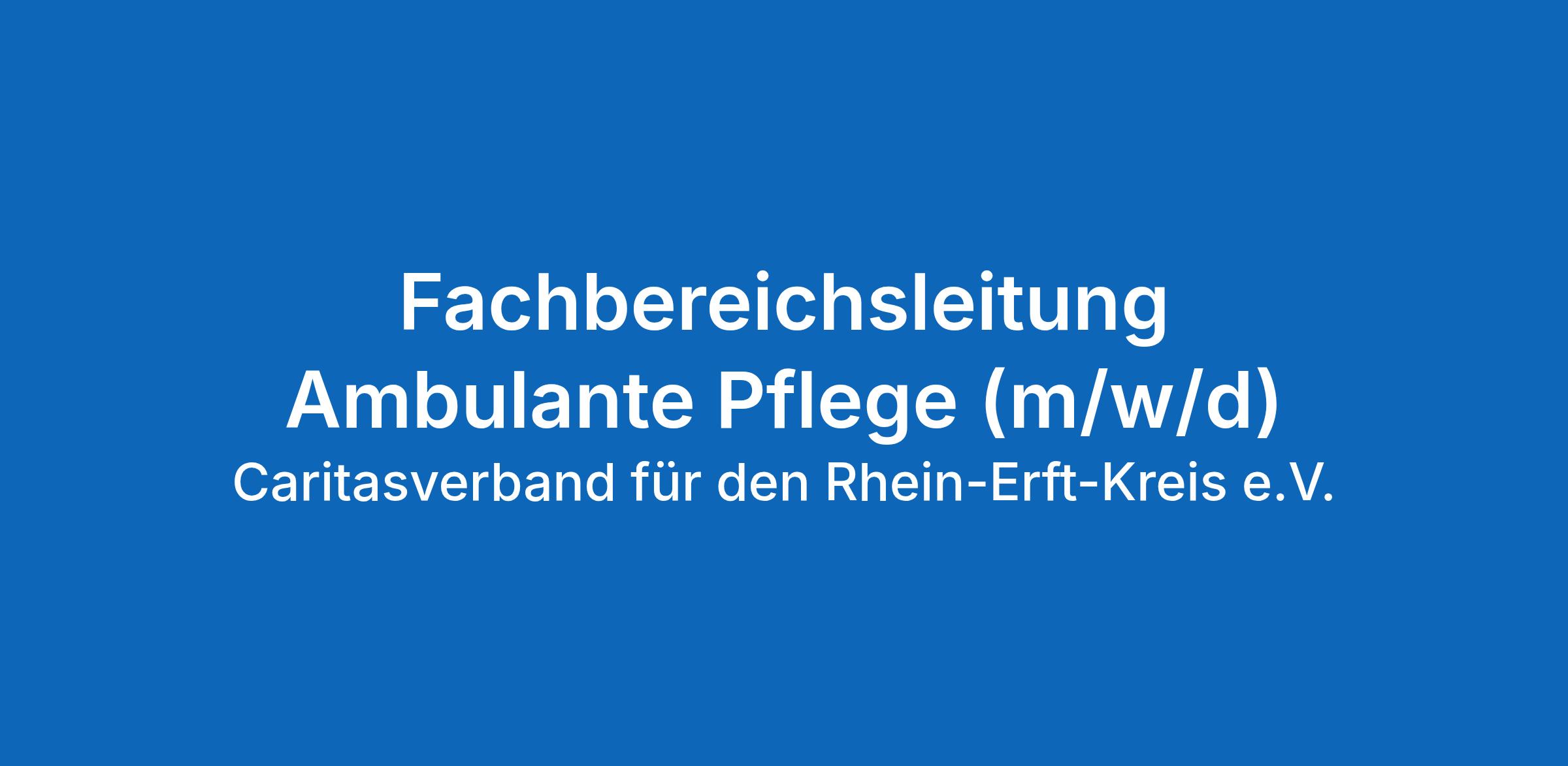 Bei der Caritas Rhein-Erft suchen wir eine Fachbereichsleitung Ambulante Pflege, die die strategische und operative Verantwortung für unseren ambulanten Pflegebereich mit ca. 300 Mitarbeitenden in 10 ambulanten Diensten, 2 Tagespflegen und der Pflegeberatung übernimmt.