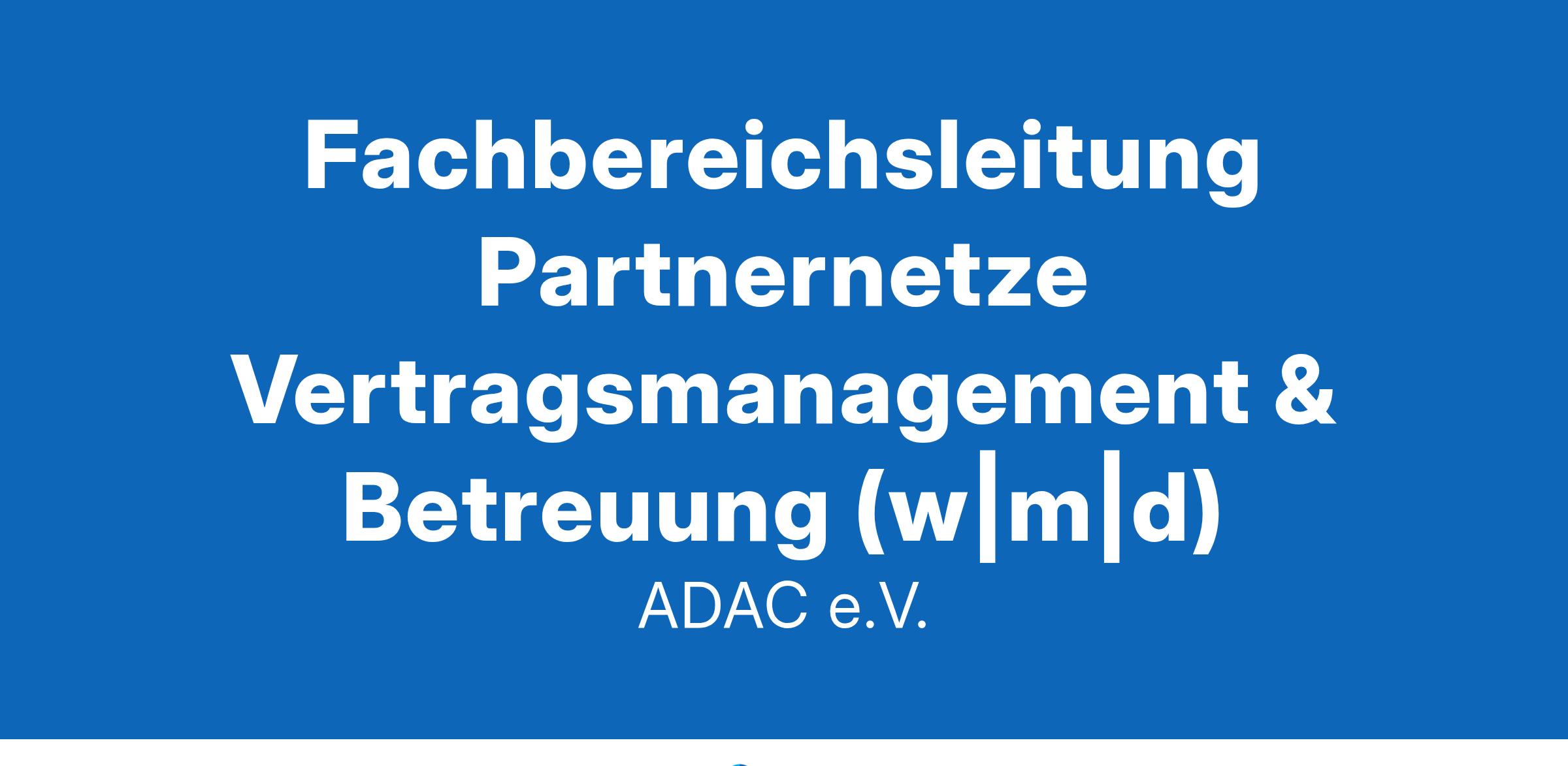 Fachbereichsleitung Partnernetze Vertragsmanagement & Betreuung (w|m|d)Der ADAC ist immer in Bewegung und da, um zu helfen - dabei decken wir die unterschiedlichsten Bereiche ab, wie z.B.: Versicherungen, Reisen und medizinische Unterstützung, rechtliche Beratung, Digitalisierung, klassische Pannenhilfe oder die Luftrettung. Wir sind da.
