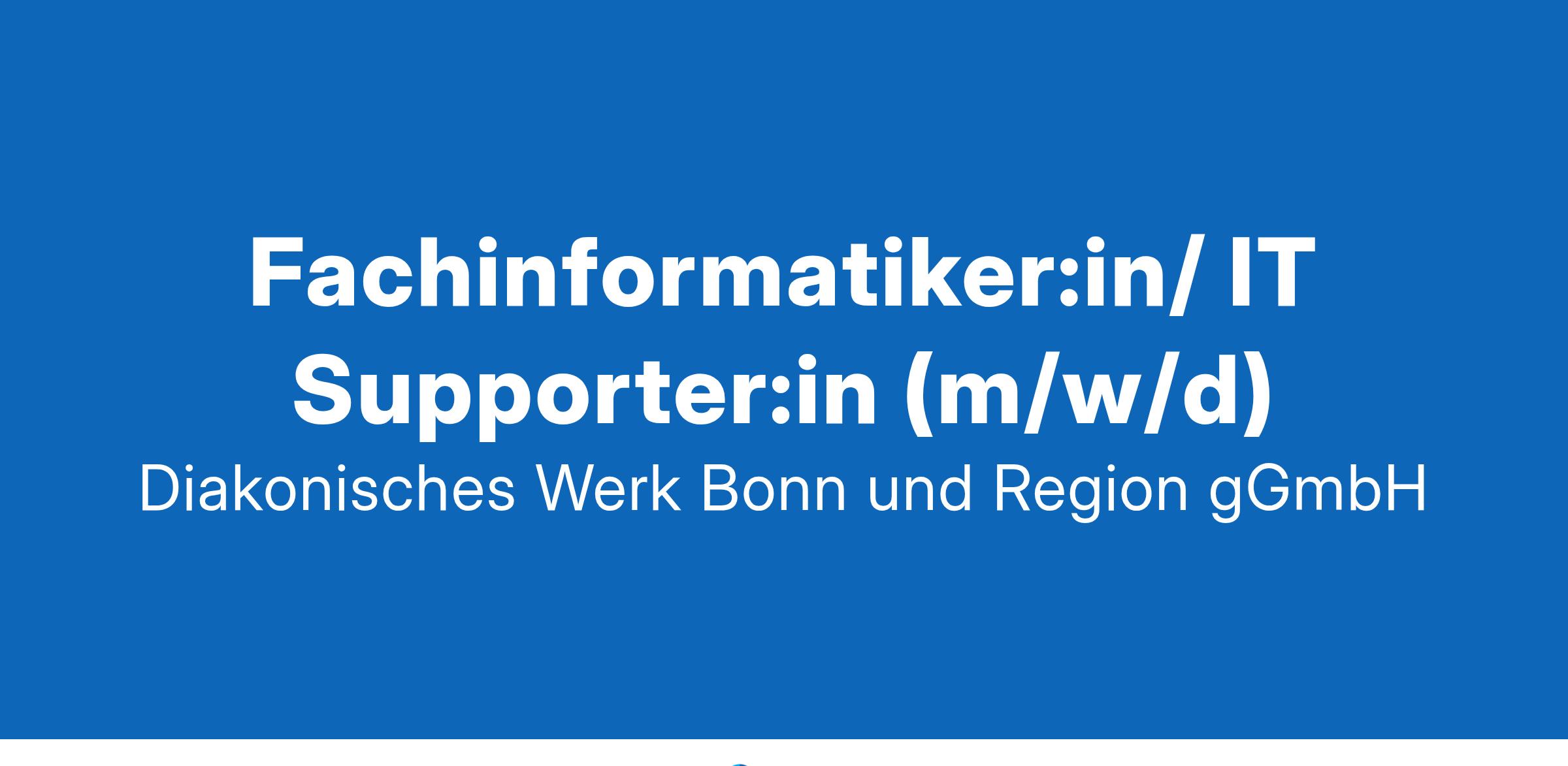 Stellenangebot Die Diakonisches Werk Bonn und Region – gemeinnützige GmbH sucht ab sofort eine:n Fachinformatiker:in/ IT Supporter:in (m/w/d) in Vollzeit Ihre Aufgaben: 1st/2nd Level Support User Support vor Ort und per Fernzugriff Administration der internen IT-Infrastruktur Wartung, Instandhaltung und Einrichtung von Hardware- und Softwarekomponenten Unterstützung der Anwenderinnen und Anwender bei Störungen und Ausfällen vor Ort als auch per Fernzugriff Unterstützung bei einer kontinuierlichen Verbesserung von Sicherheitskonzepten Erstellung und Pflege von Systemdokumentationen Zusammenarbeit mit dem IT Sicherheitsbeauftragten und Umsetzung der Vereinbarungen nach BSI Standards Umsetzung von IT Projekten in Eigenverantwortung Sie bringen mit: 1st/2nd Level Helpdesk/Support Erfahrungen Kenntnisse im Bereich ITIL/ITSM und Erfahrung im Umgang mit Ticketsystemen sind von Vorteil Erfahrung in der Konfiguration von Hard- und Software Ausgeprägte Erfahrung und Kompetenz im Bereich Server- und Netzwerkinfrastruktur Führerschein Klasse B Eigeninitiative, Flexibilität und Organisationsvermögen Positive Grundhaltung gegenüber der evangelischen Kirche, unabhängig von Ihrer Konfession Wir bieten Ihnen: Fundierte Einarbeitung und Begleitung Betriebliches Gesundheitsmanagement (z.B. JobRad) Fort- und Weiterbildung, Supervision Vergütung gemäß Tarifvertrag (BAT-KF), inklusive Jahressonderzahlung Lebensarbeitszeitkonto Kirchliche Zusatzversorgung für Ihre Alterssicherung Zuschuss zum Deutschlandticket Haben wir Ihr Interesse geweckt? Dann freuen wir uns auf Ihre Bewerbung! Senden Sie uns Ihre vollständigen Bewerbungsunterlagen (Anschreiben, Lebenslauf, Qualifikationsnachweise) unter Angabe Ihrer Gehaltsvorstellung an: bewerbung@dw-bonn.de Bewerbungen schwerbehinderter Menschen sind ausdrücklich erwünscht.