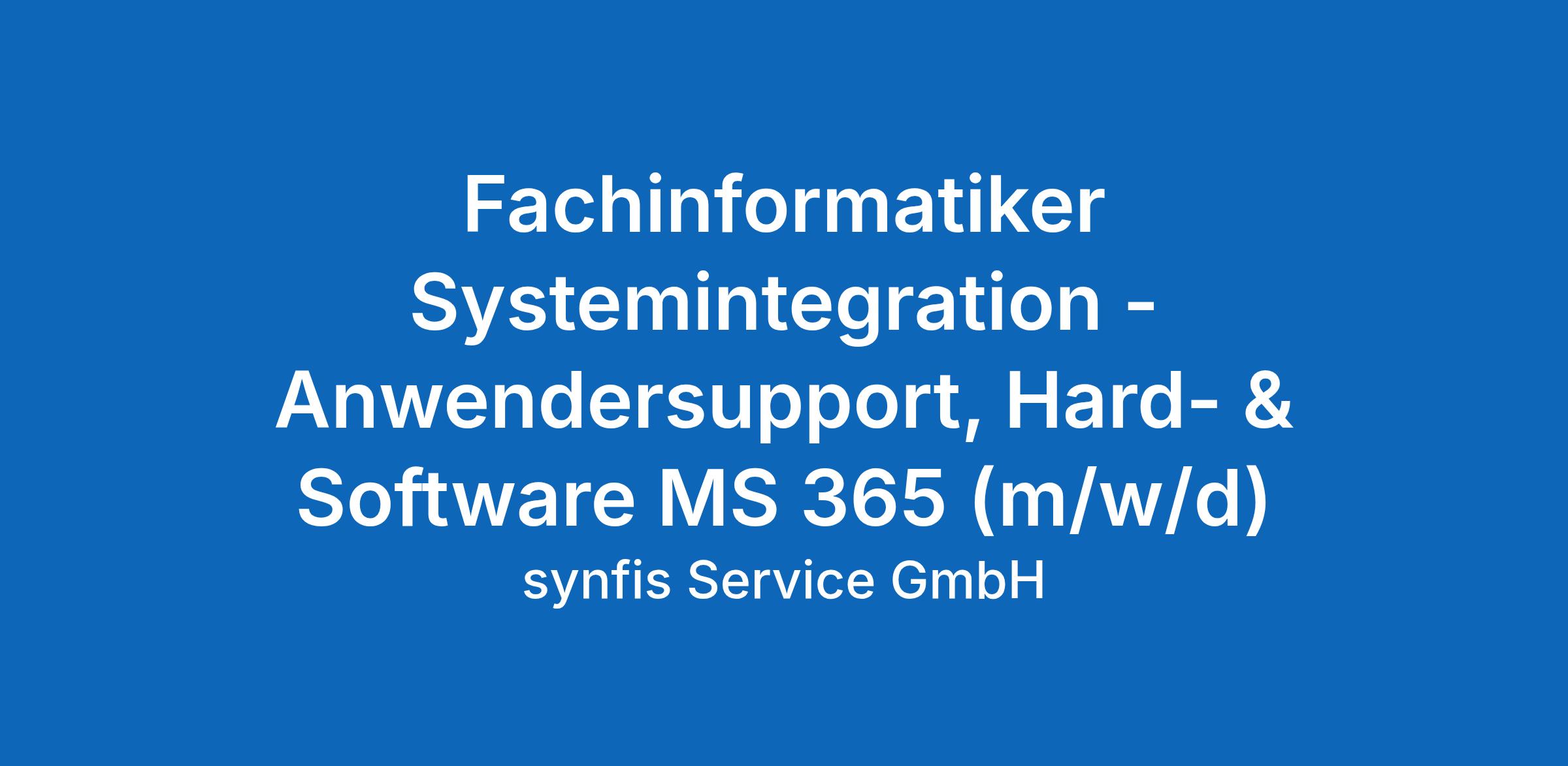 Fachinformatiker Systemintegration – Anwendersupport, Hard- & Software MS 365 (m/w/d)