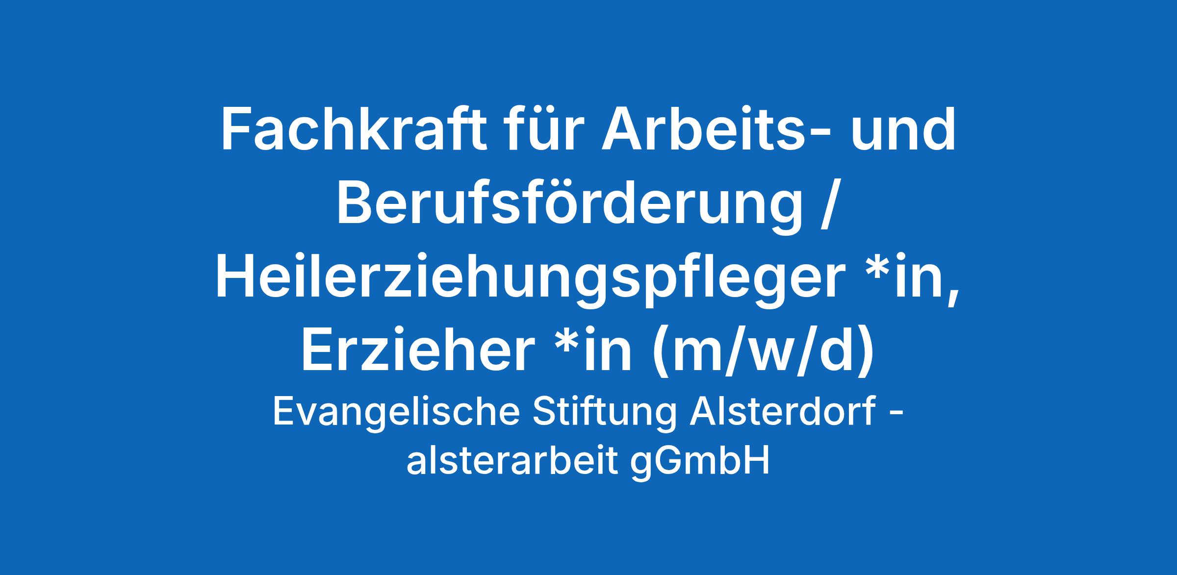 Fachkraft für Arbeits- und Berufsförderung / Heilerziehungspfleger *in, Erzieher *in (m/w/d)