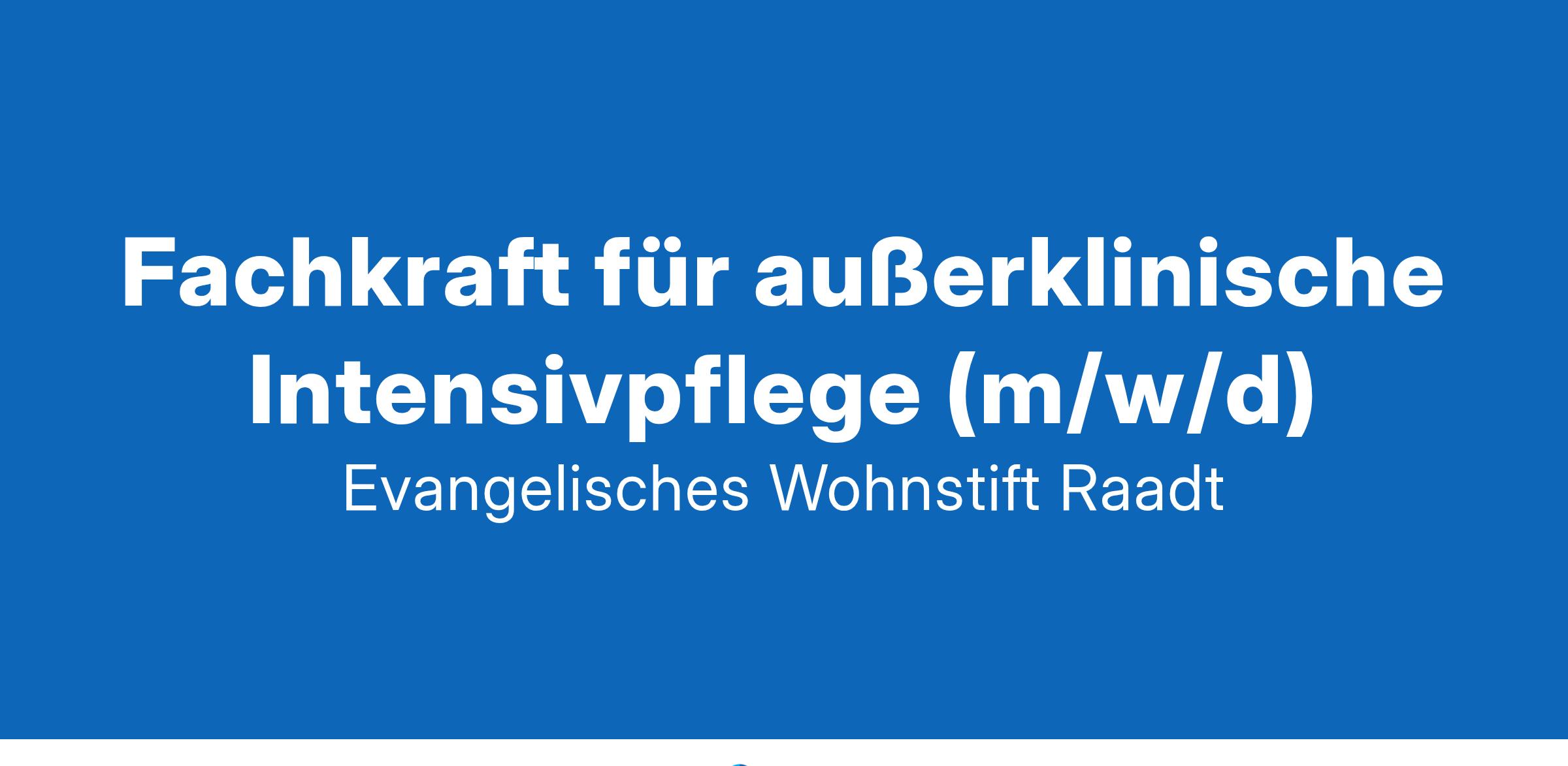 Karriere im Evangelischen Wohnstift RaadtDas Evangelische Wohnstift Raadt ist eine moderne Einrichtung der stationären Altenhilfe. Mehr als 100 Bewohnerinnen und Bewohner mit verschiedenen Pflegegraden wohnen in drei Wohnbereichen. Seit dem Jahr 2020 befindet sich die Außerklinische Intensivpflege in einem separaten Gebäude, ein Schwerpunktversorgungsbereich für Menschen im Wachkoma und/oder mit (Heim-)Beatmung. Unsere Einrichtung zeichnet sich durch seine Verwurzelung im lokalen Umfeld, die Vielfalt der Bewohnerinnen und Bewohner und unsere gewachsene Teamkultur aus. Wir sind fest im nachbarschaftlichen Umfeld verankert. Die Angehörigen unserer Bewohnerinnen und Bewohner sind bei uns stets gern gesehen und werden aktiv in unseren Alltag eingebunden.Zum nächstmöglichen Zeitpunkt suchen wir zur Verstärkung unseres Teams in der außerklinischen Intensivpflege einePflegefachkraft (m⁠/⁠w⁠/⁠d)in Voll- oder Teilzeit.Wir begleiten unsere Bewohnerinnen und Bewohner fürsorglich und mit hoher pflegerischer Kompetenz, gehen mit Einfühlungsvermögen auf persönliche Wünsche und Bedürfnisse unserer Bewohnerinnen und Bewohner ein und schaffen gleichzeitig vielfältige Möglichkeiten für Unterhaltung und familiäre Gemeinsamkeit. Die beruflichen Leistungen unserer Kolleginnen und Kollegen sind uns ebenso wichtig wie ihre persönlichen Lebenslagen und individuellen Perspektiven. Unsere regelmäßigen Fortbildungs- und Qualifizierungsangebote tragen zur eigenen Weiterentwicklung bei. Wo es erforderlich und möglich ist, passen wir Arbeitsmodelle an individuelle Bedürfnisse an und bieten Unterstützung, damit berufliche und private Belange harmonisch zusammengeführt werden können. Jedes Mitglied unseres Teams kann sich auf eine Atmosphäre des Respekts verlassen.Dein AufgabengebietGrund- und Behandlungspflege inkl. Versorgung und Übernahme der BezugspflegeBetreuung von Wachkomapatienten unter Nutzung von unterschiedlichen medizinisch-technischen Geräten, wie z.B. BGA, Antidekubitussystemen, Ernährungspumpen, Absauggeräten, OxatorenSteuerung und Überwachung von Pflege- und BetreuungsprozessenZielfestlegung und Planung der Maßnahmen im Pflege- und Betreuungsprozess, einschließlich der Kontrolle und Auswertung der Pflege- und BetreuungsqualitätInformation und Beratung von Bewohnern und AngehörigenDurchführung der elektronischen Pflegeplanung und -dokumentationDas bringst du mitErfolgreich abgeschlossene Ausbildung in der Gesundheits- und Krankenpflege oder AltenpflegeAbgeschlossene Weiterbildung im Schwerpunktbereich "Wachkoma" oder die Bereitschaft diese zu absolvierenErfahrung in der außerklinischen Intensivpflege (z.B. Wachkoma oder Heimbeatmung) wünschenswertFreude im Umgang mit pflegebedürftigen MenschenDie Fähigkeit zur kooperativen Mitarbeit in einem kreativen Team bei klar strukturierten RahmenbedingungenGute kommunikative und soziale FähigkeitenBereitschaft zum SchichtdienstDas erwartet dich bei unsBewohnerinnen und Bewohner, die dich willkommen heißenDynamische Teammitglieder, die füreinander einspringenOffenheit für deine Ideen und AnregungenAttraktive, tarifgebundene Vergütung nach BAT-KFZusatzvergütungen wie Weihnachtsgeld, Wochenend- und FeiertagszuschlägeBetriebliche Altersvorsorge durch die kirchliche Zusatzversorgungskasse (KZVK)Aktive Gesundheitsförderung (Sport & Entspannung, Gesundheitscheck u. v. m.)Arbeitgeberfinanzierte Fortbildungen und Unterstützung in deiner beruflichen und persönlichen Weiterentwicklung, auch in unserem hauseigenen Ategris BildungsinstitutViele Mitarbeitervorteile und Rabatte (Corporate Benefits, Kultur & Musik u. v. m.)Arbeitgeberunterstütztes Fahrrad-LeasingHaben wir dein Interesse geweckt?Dann nichts wie los – klicke direkt auf den "Jetzt Bewerben"-Button und überzeuge uns von deinen Fähigkeiten!