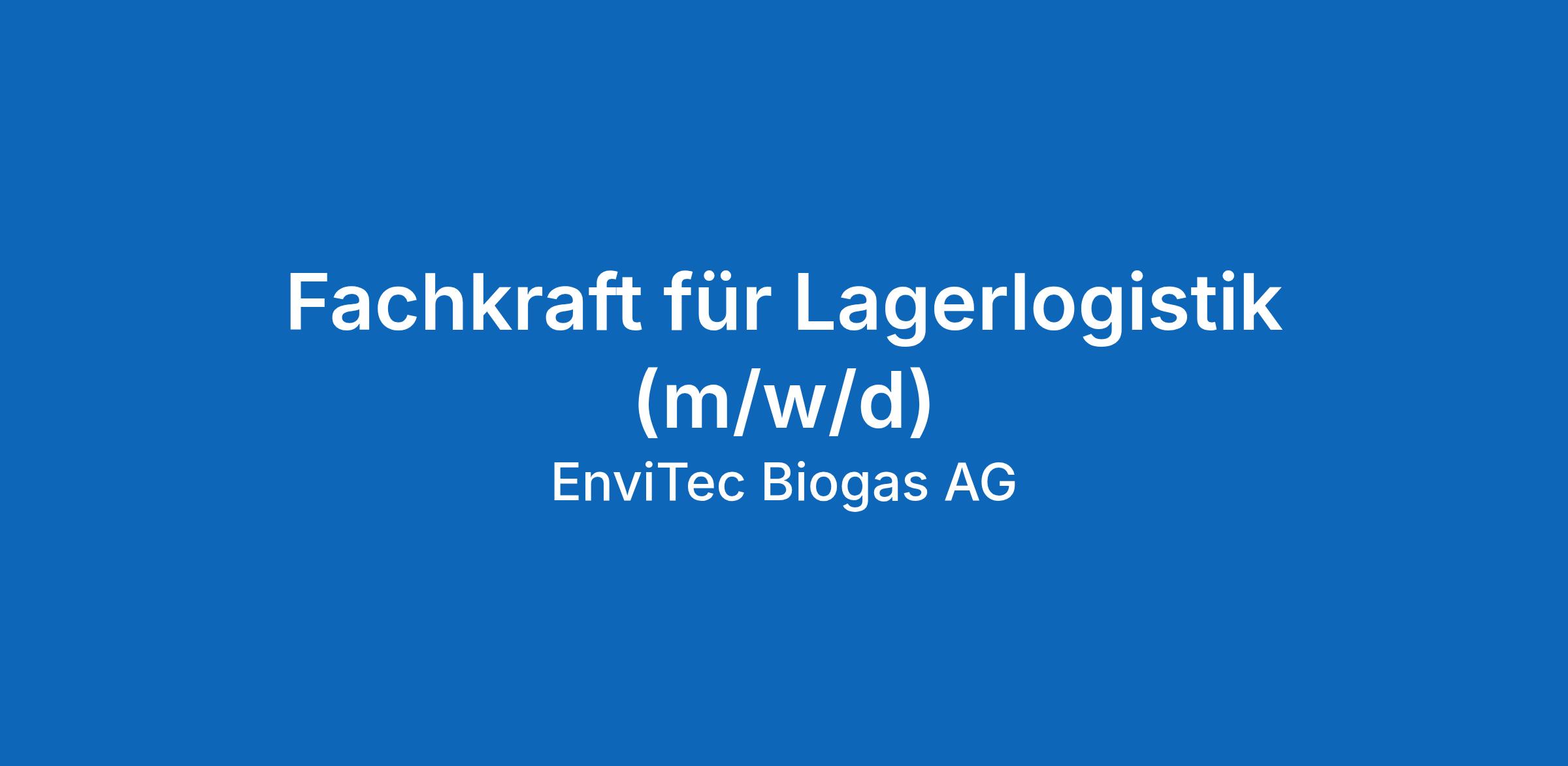 Die EnviTec Anlagenbau GmbH & Co. KG gehört zur Gruppe der EnviTec Biogas AG. Die EnviTec Biogas AG ist ein führendes Unternehmen der Biogasbranche mit 700 Mitarbeitenden und internationaler Ausrichtung. Stetige Innovation und eine am Zeitgeist der Gesellschaft orientierte Unternehmenskultur haben die EnviTec Biogas AG zu einem der weltweit größten Anbieter von Biogasanlagen gemacht. Zum nächstmöglichen Zeitpunkt suchen wir eine Fachkraft für Lagerlogistik (m/w/d) zur Unterstützung unseres Teams in 48369 Saerbeck.