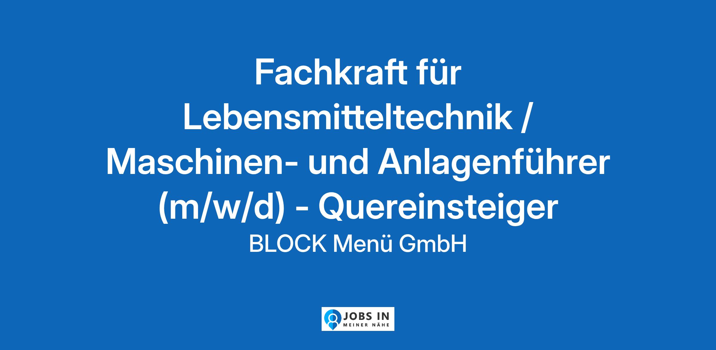 **Block Menü** ist ein Tochterunternehmen der Hamburger **Block Gruppe** und Hersteller frischer Menükomponenten für die mittlere und gehobene Gastronomie und den Lebensmitteleinzelhandel im gesamten Bundesgebiet sowie im europäischen Ausland. Aufgrund weiterer Expansion suchen wir ab sofort: **Fachkräfte für Lebensmitteltechnik (m/w/d)** **Maschinen- und Anlagenführer (m/w/d)** **Das bieten wir Ihnen:** * Weihnachts- & Urlaubsgeld * Bonuszahlungen und Nachtzuschläge * Aus- und Weiterbildungsmöglichkeiten sowie Aufstiegschancen * Kostenlose Verpflegung im Mitarbeiterrestaurant * Vermögenswirksame Leistungen * Kostenloser Parkplatz * Gestellte Arbeitskleidung * Sonderurlaub * Mitarbeiterrabatte * Mitarbeiterevents * Mitgliedschaft im Fitnessstudio * JobRad-Leasing * Bei Bedarf kann eine Betriebswohnung gestellt werden **Ihre Aufgaben:** * Herstellen von hochwertigen Lebensmitteln mit Hilfe von Maschinen aus Rohstoffen und Halbfabriken nach vorgegebenen Rezepten. * Bedienen und Überwachen von Maschinen und Automaten * Mitverantwortung für die Einhaltung der gültigen Hygienestandards und der allgemeinen Sauberkeit * Beseitigen von Fehlerquellen **Ihr Profil:** * Sie sind Fachkraft für Lebensmitteltechnik (m/w/d) oder Anlagenführer (m/w/d) * Idealerweise Berufserfahrung oder motivierter Quereinsteiger **Interesse?** Werden Sie Teil unseres Teams! In der **Block Gruppe** erwartet Sie ein zertifiziert familienfreundliches Unternehmen mit betrieblichem Gesundheitsmanagement und erstklassigem Betriebsklima. **Block Menü GmbH** Ernst-Litfaß-Str. 1 19246 Zarrentin