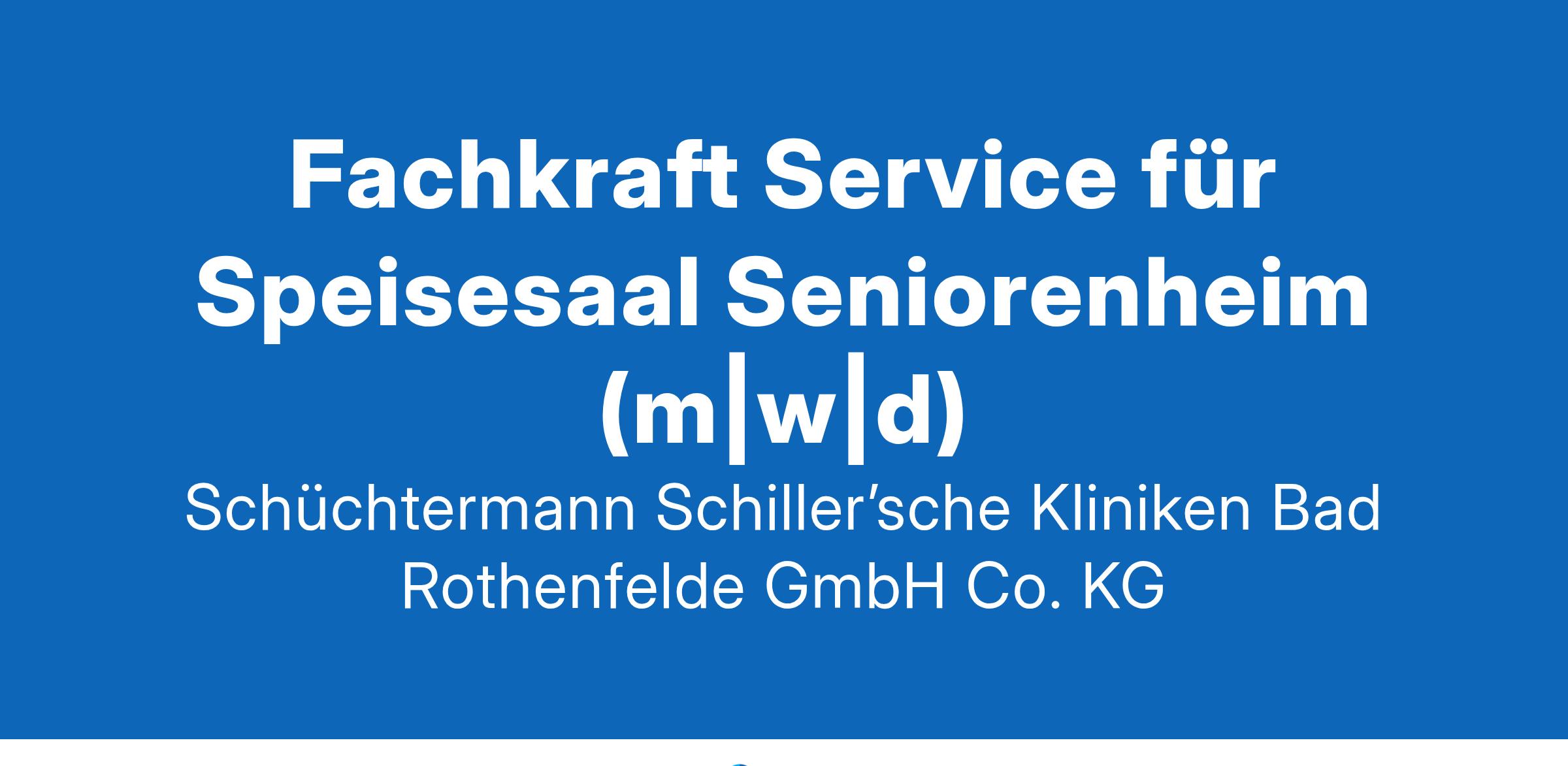 Die Dörenberg-Klinik Bad Iburg ist eine Einrichtung der Schüchtermann-Schiller ́schen Familienstiftung. Wir fungieren als Schwerpunktklinik für orthopädische, geriatrische und neurologische Rehabilitation sowie berufsgenossenschaftliche stationäre Weiterbehandlung (BGSW). Mit über 230 Betten bieten wir verschiedene stationäre und ambulante Behandlungsformen an. An die Klinik ist ein Medizinisches Versorgungszentrum mit den Fachdisziplinen Neurologie und Rehabilitative Medizin angegliedert. Für den Standort Bad Iburg suchen wir zum frühestmöglichen Eintrittstermin eine Die Stelle kann in Teilzeit (bis zu 35 Wochenstunden) oder als Mini-Job ausgeübt werden.Ihre AufgabenIhre AufgabenServieren von Speisen und Getränken an Patienten mit allen Vor- und Nacharbeiten Sicherstellung und Überprüfung der Sauberkeit, Ordnung und Funktionalität im Speisesaal Eindecken und Reinigung der Tische und BuffetsIhr ProfilIhr ProfilServiceorientierung und Freude am eigenverantwortlichen Arbeiten Grundkenntnisse Hygiene, Arbeitsschutz und Unfallverhütung Ein Auge fürs Detail sowie Sauberkeit und Ordnung Gepflegtes Erscheinungsbild, positive Ausstrahlung und gute Umgangsformen Gelebte Herzlichkeit und Spaß im Umgang mit Menschen Immunnachweis MasernWir bietenWir bietenEin erfahrenes, kollegiales Team Corporate Benefits Kostenfreie private Nutzung der Schwimmhalle und des Trainingszentrums Eine vergünstigte ausgewogene und gesunde Frühstücks- und Mittagsverpflegung Prämiensystem bei Anwerbung von PersonalHaben wir Ihr Interesse geweckt?Bitte bewerben Sie sich online über unser Karriereportal unter www.doerenberg-klinik.de.