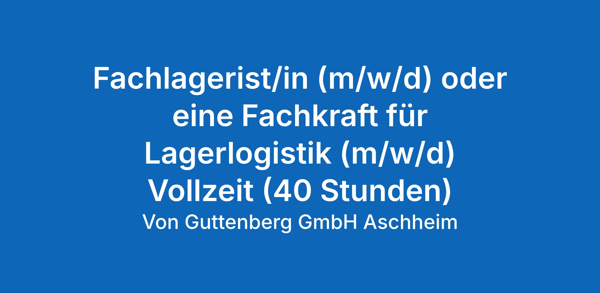 Erfolgreich abgeschlossene Ausbildung zum Fachlageristen (m/w/d) oder zur Fachkraft für Lagerlogistik (m/w/d) oder eine vergleichbare abgeschlossene Ausbildung