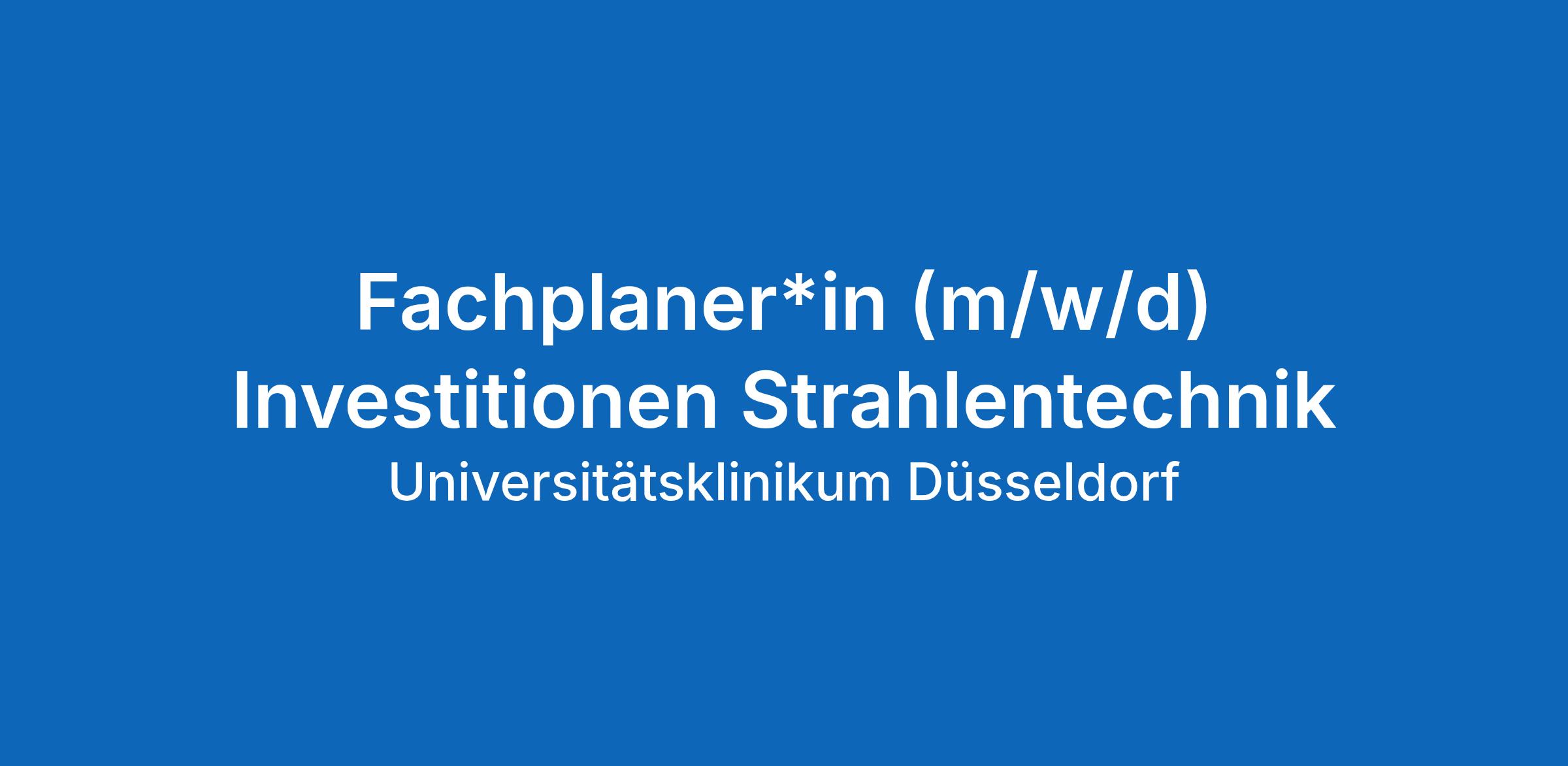 Fachplaner*in (m/w/d) Investitionen Strahlentechnik