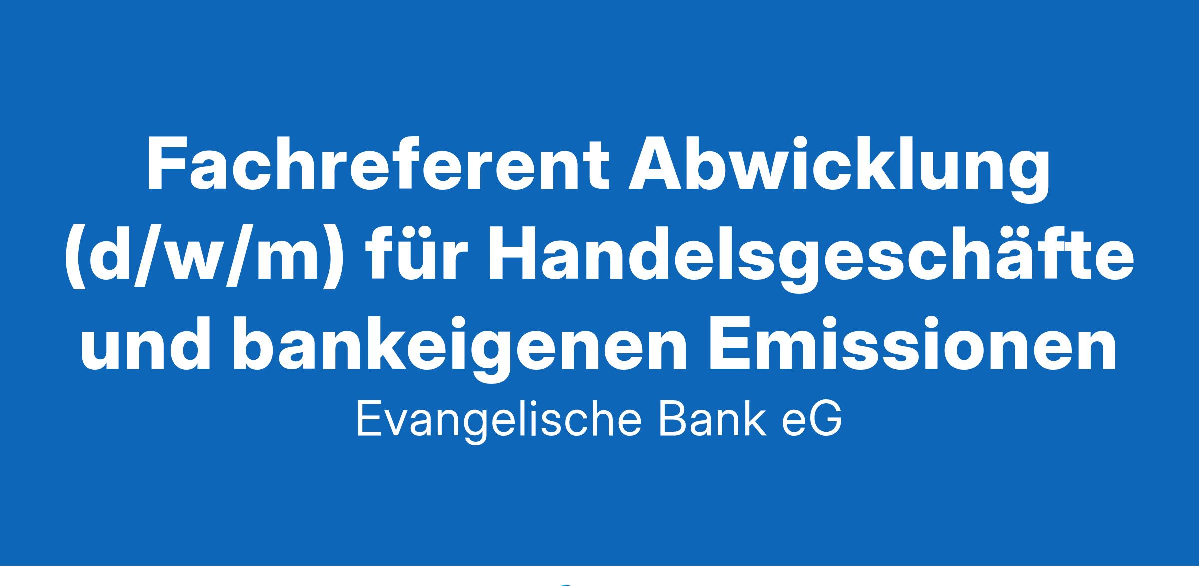 Die Evangelische Bank Mit rund 420 Mitarbeitern ist die Evangelische Bank als genossenschaftlich organisiertes, modernes Kreditinstitut die nachhaltig führende Spezialbank für Kund:innen aus Kirche, Diakonie, Gesundheits- und Sozialwirtschaft sowie für alle privaten Kund:innen, die sich mit unseren Werten identifizieren. In unserem Kerngeschäft finanzieren wir soziale Projekte aus den Bereichen Gesundheit, Altenpflege, Jugend- und Behindertenhilfe, Bildung, bezahlbarer Wohnraum sowie privater Wohnbau. Wir investieren in Vorhaben, Unternehmen und Institutionen, die zur Bewahrung der Schöpfung einen positiven Beitrag leisten. Unser unternehmerisches Handeln richtet sich nach den 17 Zielen für nachhaltige Entwicklung (Sustainable Development Goals – SDGs) und nach dem anspruchsvollen Nachhaltigkeitsstandard EMASplus aus. Wir suchen für den Standort Kassel zum nächstmöglichen Zeitpunkt einen Fachreferent Abwicklung (d/w/m) für unsere Handelsgeschäfte und bankeigenen Emissionen Deine Aufgaben Du bist mitverantwortlich für die ordnungsgemäße und termingerechte Aufgabenbearbeitung und die Prozesse in dem zugeordneten Verantwortungsbereich (Abwicklung von Handelsgeschäften und Drittbankgeschäften, Auslandszahlungsverkehr, bankeigene Emissionen). Du disponierst den Arbeitseinsatz der zugeordneten Mitarbeiter in deinem Verantwortungsbereich. Du stellst die Einhaltung von rechtlichen Vorschriften und zugeordneten Kontroll- und Überwachungspflichten sicher. Du erstellst Dokumentationen, Analysen und interne Berichte/Reportings. Du leitest oder begleitest Projekte und arbeitest neue Mitarbeiter ein. Du wirkst bei der Zielvereinbarung für den Funktionsbereichs mit. Du erkennst Optimierungspotenzial und informierst die internen Funktionsträger transparent über Neuerungen und rechtliche Änderungen. Dein Profil Du weist ein abgeschlossenes wirtschaftswissenschaftliches Studium oder eine vergleichbare abgeschlossene Ausbildung vor. Du verfügst bereits über Erfahrungen in der Finanzdienstleitungsbranche und hast gute Kenntnisse der Geld- und Kapitalmärkte. Du hast mehrjährige Erfahrung in den aufgeführten Aufgabenbereichen und konntest bereits erste Führungserfahrung sammeln. Du bist organisiert und zeichnest Dich durch eine strukturierte und lösungsorientierte Arbeitsweise aus. Du überzeugst durch Kommunikationsfreude sowie durch Kooperations- und Teamfähigkeit. Du schätzt eigenverantwortliches und serviceorientiertes Arbeiten. Was Dich erwartet Eine genossenschaftlich organisierte Spezialbank, die von werteorientiertem und zukunftsorientiertem Handeln geprägt ist und sich unter anderem als Top Employer Deutschland einen Namen gemacht hat. Ein sicheres, herausforderndes, familienfreundliches und motivierendes Arbeitsumfeld. Vielfältige Benefits und Maßnahmen zur Work-Life Balance, wie flexible Arbeitszeiten, ein aktives betriebliches Gesundheitsmanagement, Fahrtkostenzuschuss für den Nahverkehr, Fahrradleasing und einen Familienservice. Eine faire Vergütung nach Tarifvertrag der Genossenschaftsbanken sowie eine betriebliche Altersvorsorge, vermögenswirksame Leistungen und Sonderkonditionen im Rahmen der Kontoführung, Geldanlagen bzw. Finanzierungen. Das klingt für Dich nach einer spannenden Herausforderung? Dann freuen wir uns auf Deine Bewerbung unter eb.de/karriere Wir setzen uns für ein Arbeitsumfeld ein, das frei von Vorurteilen ist und in dem Vielfalt wertgeschätzt, gestärkt und gefördert wird. Menschen mit Behinderung und gleicher Qualifikation werden bevorzugt behandelt. Solltest du weitere Informationen benötigen, wende dich bitte an: Mario Umbach Abteilungsleiter Depositary & Operations Telefon 0561 7887-2497 oder an Ben Geibies Recruiter Telefon 0561 7887-1106 www.eb.de