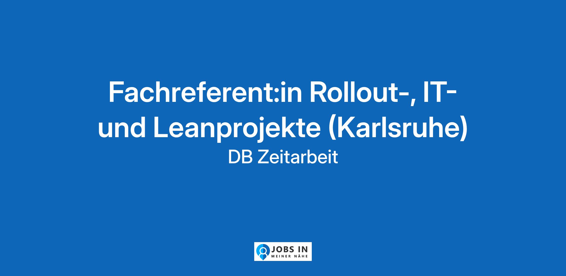 Zum nchstmglichen Zeitpunkt suchen wir dich als Zeitarbeitnehmer:in im Auftrag der DB InfraGO AG fr einen Einsatz als Fachreferent:in Rollout-, IT- und Leanprojekte (w/m/d) am Standort Karlsruhe. Als Zeitarbeitnehmer:in erbringst du deine Arbeitsleistung direkt vor Ort im genannten Geschftsfeld, whrend du dein Arbeitsverhltnis mit uns, der DB Zeitarbeit, abschliet.