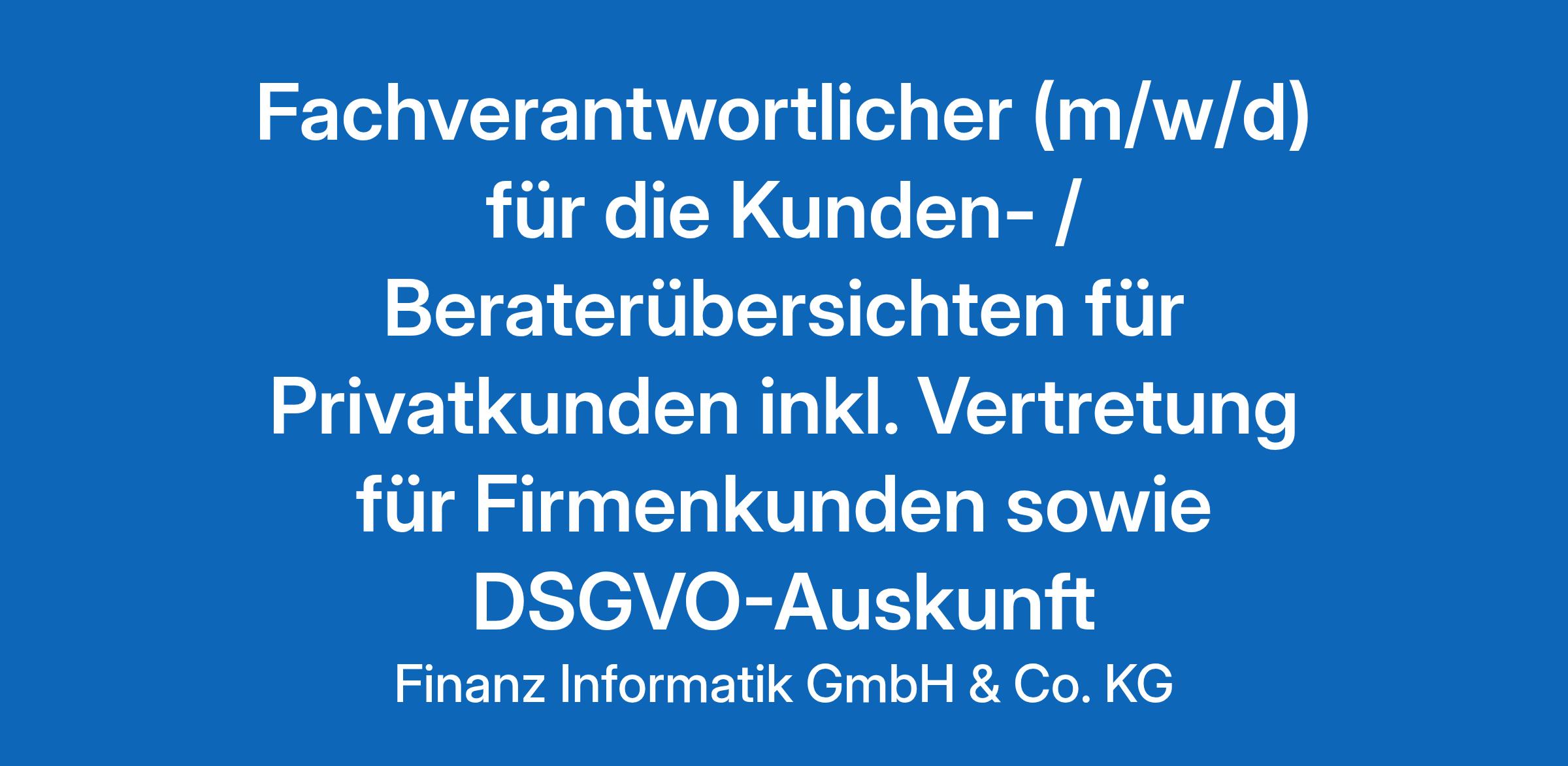 Fachverantwortlichen (m/w/d) für die Kunden- / Beraterübersichten für Privatkunden inkl. Vertretung für Firmenkunden sowie DSGVO-Auskunft