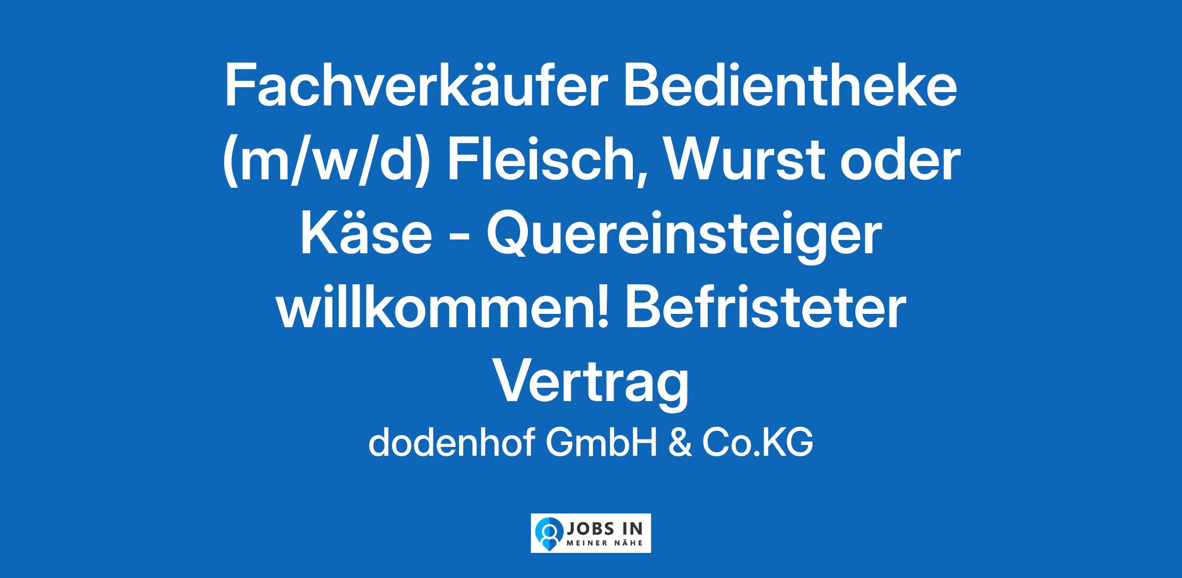 Du liebst Fleisch, Wurst oder Käse und hast ein Gespür für Qualität und Frische und berätst gerne mit Geschmack? Dann mach unsere GenießerWelt zu deiner neuen Arbeitswelt! Wir suchen dich zum nächstmöglichen Zeitpunkt für unsere Bedientheke – in Voll- oder Teilzeit (25 bis 38 Std./Woche) und unbefristet. **Unsere Benefits - das erwartet dich bei uns!** * **Unbefristetes Arbeitsverhältnis** - Sicherheit und Stabilität in einem Familienunternehmen. * **Personalrabatt** - Spare beim Einkaufen in unserem Center. * **Weihnachts- und Urlaubsgeld** - Weil wir dein Engagement schätzen. * **Attraktive Zulage** - Für deinen Einsatz an der Bedientheke. Und noch vieles mehr... * **Betriebliche Altersvorsorge** - Schon jetzt an die Zukunft denken. * **Flexibilität** - Wir bieten dir die 4-Tage Woche. * **JobRad** - Klimafreundlich unterwegs sein. * **Vergünstigungen im Fitnessstudio** - Bleib fit mit uns. * **Fahrtkostenzuschuss** - Wir unterstützen dich auf deinem Weg zur Arbeit. * **dodenhof Academy** - Persönliche und fachliche Weiterentwicklung garantiert. **Deine Aufgaben - Abwechslung garantiert!** * **Gäste empfangen** - Du begrüßt unsere Gäste mit einem Lächeln und schaffst eine besondere Beratungsatmosphäre. * **Individuell beraten** - Du bist die erste Anlaufstelle für unsere Gäste an der Bedientheke und beantwortest alle Fragen kompetent und mit einem Lächeln. * **Service bieten** - Du sprichst unsere Gäste aktiv an, schaffst eine angenehme Einkaufsatmosphäre und hinterlässt einen positiven Eindruck. * **Waren präsentieren** - Du richtest die Verkaufsfläche ansprechend und attraktiv aus. **Das bringst du mit - so passt du perfekt ins Team!** * 🎓 **Fachkenntnisse** - Du hast eine Ausbildung im Einzelhandel oder eine vergleichbare Qualifikation – auch motivierte Quereinsteiger sind willkommen. * 📚 **Ausbildung & Erfahrung** - Du bringst idealerweise erste Berufserfahrung im Bereich Bedientheken im Lebensmitteleinzelhandel oder vergleichbares mit. * 🗣️ **Kommunikationsfreude** - Du punktest mit Empathie und hast Freude daran, mit Menschen zu arbeiten und sie zu begeistern. * 💗 **Ausstrahlung** - Dein freundliches Auftreten und deine guten Umgangsformen sorgen für eine angenehme Atmosphäre – bei Kunden und im Team. * 🤝 **Teamgeist** - Du arbeitest gern mit anderen zusammen und trägst zu einem positiven Miteinander bei. **Über uns - wer wir sind!** dodenhof ist Norddeutschlands größtes Shopping-Center mit Standorten in Posthausen bei Bremen und Kaltenkirchen bei Hamburg. Als Familienunternehmen in vierter Generation vereinen wir seit 1910 Tradition und Moderne und bieten unseren Gästen mit unseren ca. 1.000 Mitarbeitenden ein einzigartiges Einkaufserlebnis - vielleicht bald auch mit dir? Jetzt bewerben – wir freuen uns auf dich! Klicke einfach auf den Bewerben-Button und sende uns deine Unterlagen inkl. möglichem Starttermin! Wir fördern Vielfalt & Chancengleichheit – bei uns sind alle Bewerbungen willkommen, unabhängig von Geschlecht, Herkunft, Religion, Behinderung, Alter oder Identität!