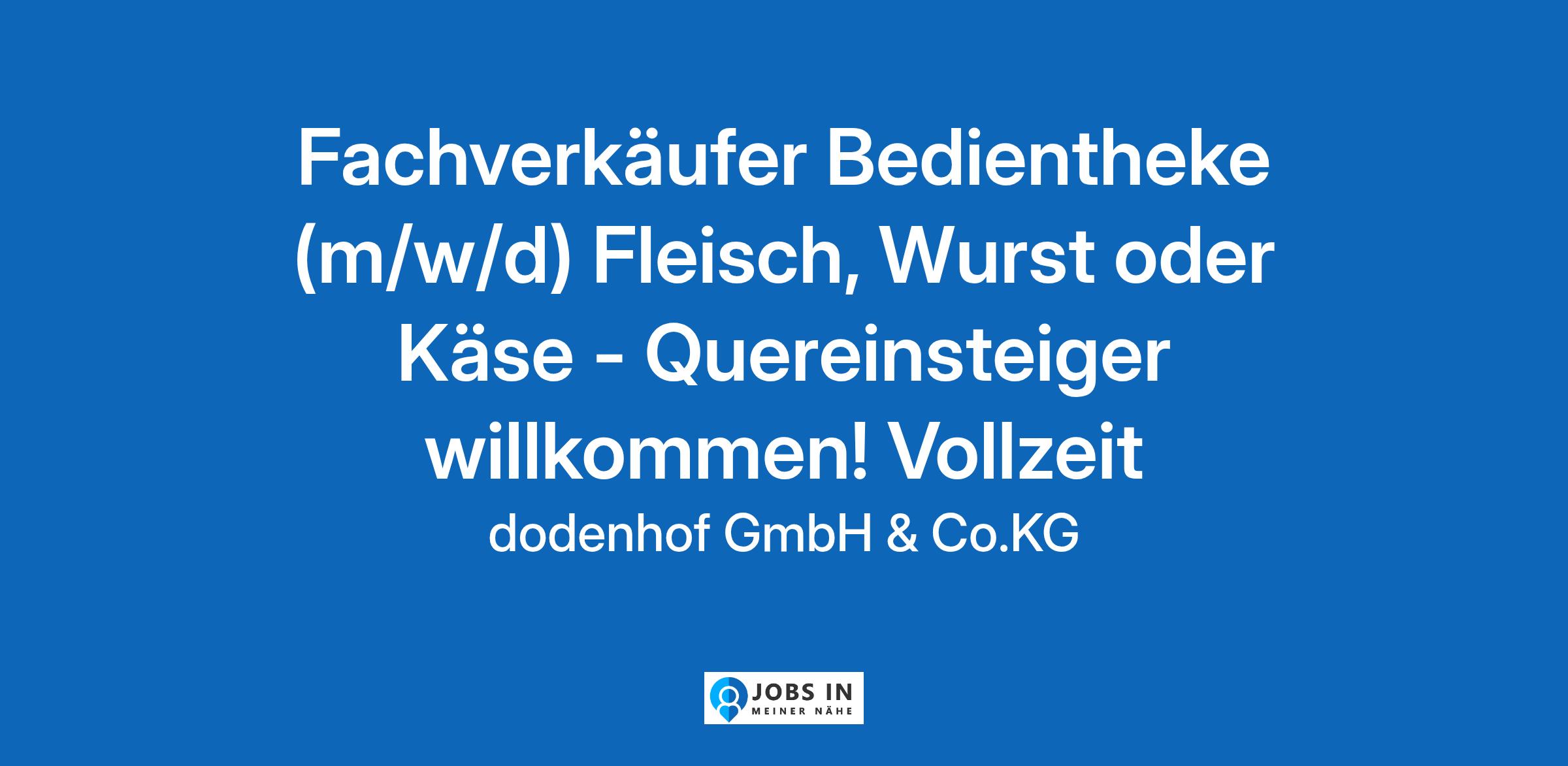Du liebst Fleisch, Wurst oder Käse und hast ein Gespür für Qualität und Frische und berätst gerne mit Geschmack? Dann mach unsere GenießerWelt zu deiner neuen Arbeitswelt! Wir suchen dich zum nächstmöglichen Zeitpunkt für unsere Bedientheke – in Voll- oder Teilzeit (25 bis 38 Std./Woche) und unbefristet. **Unsere Benefits - das erwartet dich bei uns!** * **Unbefristetes Arbeitsverhältnis** - Sicherheit und Stabilität in einem Familienunternehmen. * **Personalrabatt** - Spare beim Einkaufen in unserem Center. * **Weihnachts- und Urlaubsgeld** - Weil wir dein Engagement schätzen. * **Attraktive Zulage** - Für deinen Einsatz an der Bedientheke. Und noch vieles mehr... * **Betriebliche Altersvorsorge** - Schon jetzt an die Zukunft denken. * **Flexibilität** - Wir bieten dir die 4-Tage Woche. * **JobRad** - Klimafreundlich unterwegs sein. * **Vergünstigungen im Fitnessstudio** - Bleib fit mit uns. * **Fahrtkostenzuschuss** - Wir unterstützen dich auf deinem Weg zur Arbeit. * **dodenhof Academy** - Persönliche und fachliche Weiterentwicklung garantiert. **Deine Aufgaben - Abwechslung garantiert!** * **Gäste empfangen** - Du begrüßt unsere Gäste mit einem Lächeln und schaffst eine besondere Beratungsatmosphäre. * **Individuell beraten** - Du bist die erste Anlaufstelle für unsere Gäste an der Bedientheke und beantwortest alle Fragen kompetent und mit einem Lächeln. * **Service bieten** - Du sprichst unsere Gäste aktiv an, schaffst eine angenehme Einkaufsatmosphäre und hinterlässt einen positiven Eindruck. * **Waren präsentieren** - Du richtest die Verkaufsfläche ansprechend und attraktiv aus. **Das bringst du mit - so passt du perfekt ins Team!** * 🎓 **Fachkenntnisse** - Du hast eine Ausbildung im Einzelhandel oder eine vergleichbare Qualifikation – auch motivierte Quereinsteiger sind willkommen. * 📚 **Ausbildung & Erfahrung** - Du bringst idealerweise erste Berufserfahrung im Bereich Bedientheken im Lebensmitteleinzelhandel oder vergleichbares mit. * 🗣️ **Kommunikationsfreude** - Du punktest mit Empathie und hast Freude daran, mit Menschen zu arbeiten und sie zu begeistern. * 💗 **Ausstrahlung** - Dein freundliches Auftreten und deine guten Umgangsformen sorgen für eine angenehme Atmosphäre – bei Kunden und im Team. * 🤝 **Teamgeist** - Du arbeitest gern mit anderen zusammen und trägst zu einem positiven Miteinander bei. **Über uns - wer wir sind!** dodenhof ist Norddeutschlands größtes Shopping-Center mit Standorten in Posthausen bei Bremen und Kaltenkirchen bei Hamburg. Als Familienunternehmen in vierter Generation vereinen wir seit 1910 Tradition und Moderne und bieten unseren Gästen mit unseren ca. 1.000 Mitarbeitenden ein einzigartiges Einkaufserlebnis - vielleicht bald auch mit dir? Jetzt bewerben – wir freuen uns auf dich! Klicke einfach auf den Bewerben-Button und sende uns deine Unterlagen inkl. möglichem Starttermin! Wir fördern Vielfalt & Chancengleichheit – bei uns sind alle Bewerbungen willkommen, unabhängig von Geschlecht, Herkunft, Religion, Behinderung, Alter oder Identität!
