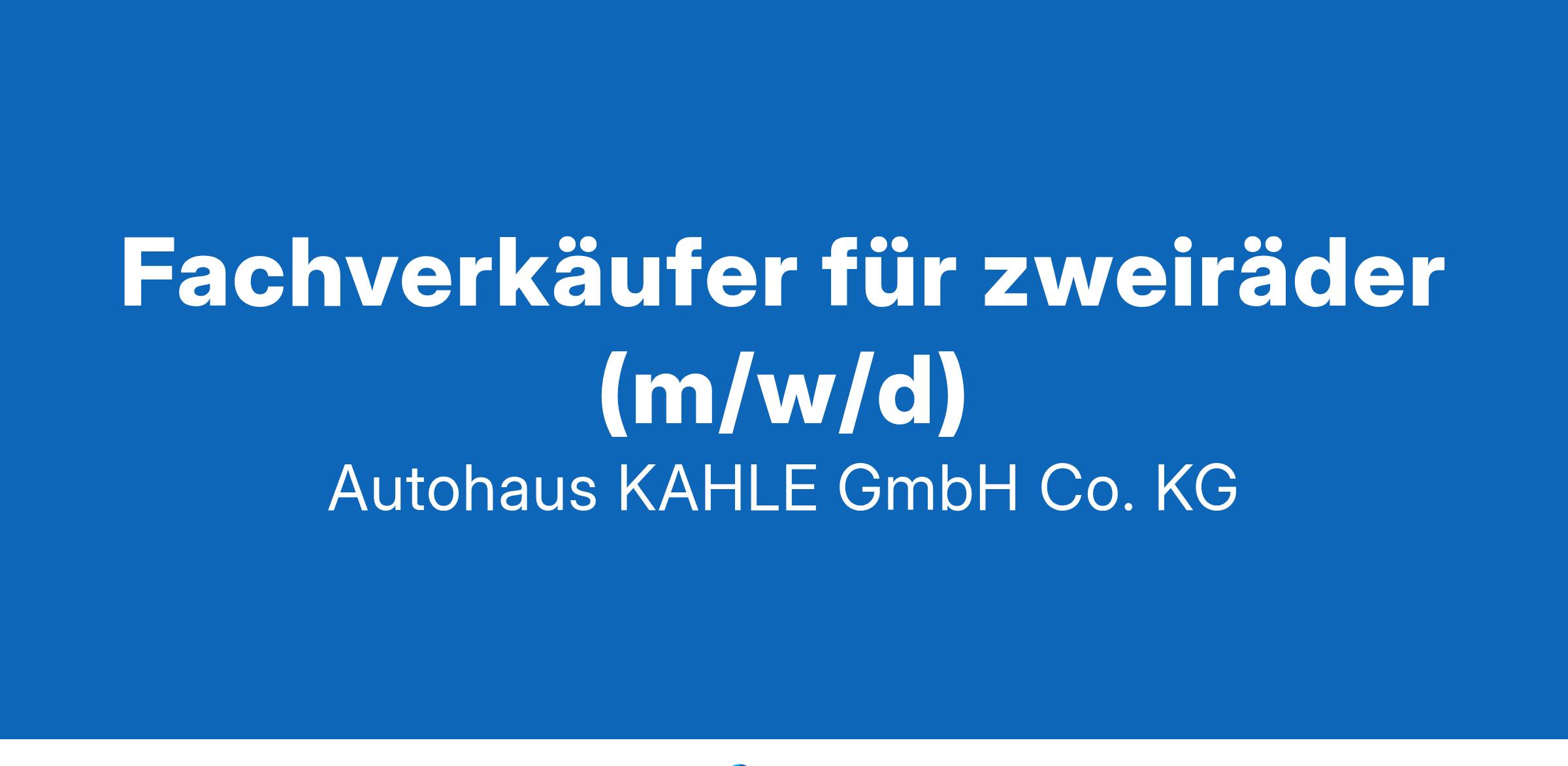 Wir suchen DICH!Für unseren Standort in Hannover suchen wir ab sofort einen Fachverkäufer für Zweiräder (m/w/d)Was du bei uns bewegstBeratung der Kund Innen und Verkauf von E-Scootern und FahrrädernBuchung und Durchführung von ProbefahrtenAkquise von Neukunden sowie Pflege der BestandskundenErstellen von Angeboten und FinanzierungsmöglichkeitenKlärung von technischen FragenWas du dafür mitbringen musstEine abgeschlossene technische oder kaufmännische BerufsausbildungVerkaufstalent und Freude an der KaltakquiseEine hohe sprachliche KompetenzFührerschein der Klasse B und A1 oder A2, AEin sicheres AuftretenFlexibilität bei der KundenanspracheTechnische Erfahrungen im Bereich E-Scooter/ ZweiräderEine positive KundeneinstellungBereitschaft für WochenendarbeitWas uns bewegt und dich nach vorne bringt#Familienunternehmen: modern, leistungsstark, familiär, KAHLE#Hand in Hand: erfolgreiches Teamwork#Gehalt: Top Gehalt zzgl. 13. Monatsgehalt#Perspektive: persönliche und fachliche Weiterbildungen#Karten auf den Tisch: Transparente und verbindliche Kommunikation#TEAM: Betriebsfeste, motivierte Kolleg Innen und viel Spaß bei der Arbeit#Benefits: Dienstrad-, Dienstrollerleasing, betrieblicher Vermögensaufbau durch ETFs, Mitarbeiterrabatte uvm#Work-Life-Balance: 30 Tage Urlaub, flexible Arbeitszeiten und ein unbefristetes Anstellungsverhältnis#Bobby KAHLE: Ausbildungsplatzgarantie für alle Mitarbeiterkinder der KAHLE GruppeWichtig: Aus Sicherheitsgründen nehmen wir Online-Bewerbungen ausschließlich als PDF-Dateien entgegen. Word-Dokumente (doc(x)) werden nicht berücksichtigt!