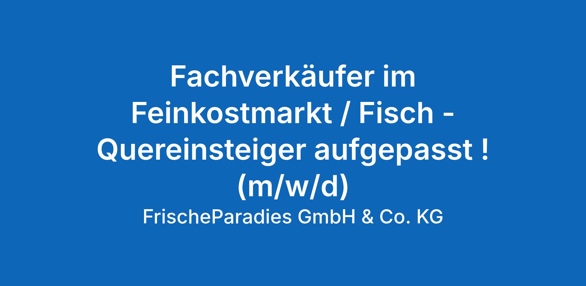 Fachverkäufer im Feinkostmarkt / Fisch - Quereinsteiger aufgepasst ! (m/w/d)