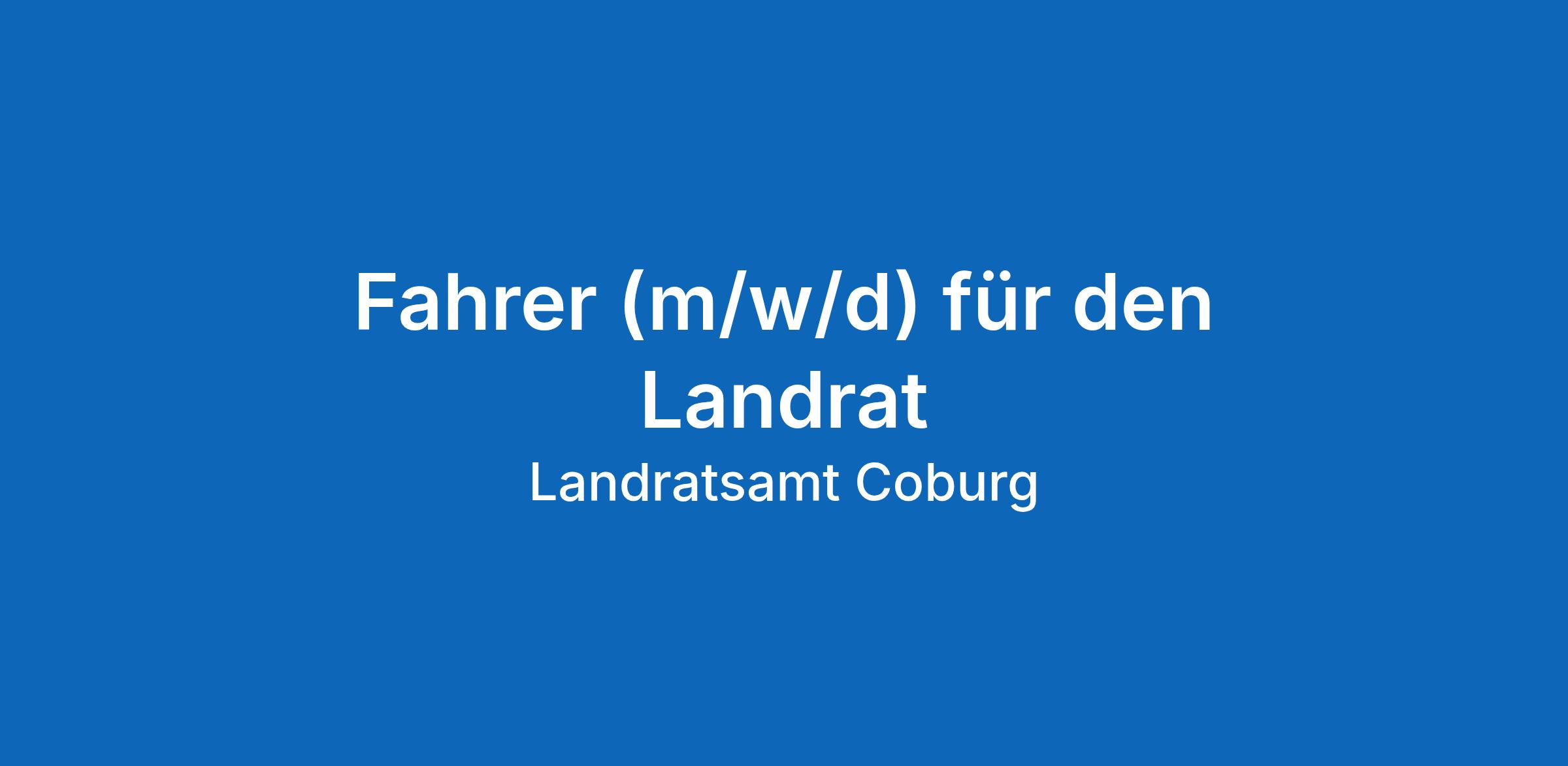 Der Landkreis Coburg sucht einen Fahrer (m/w/d) für den Landrat in Vollzeit und unbefristet.