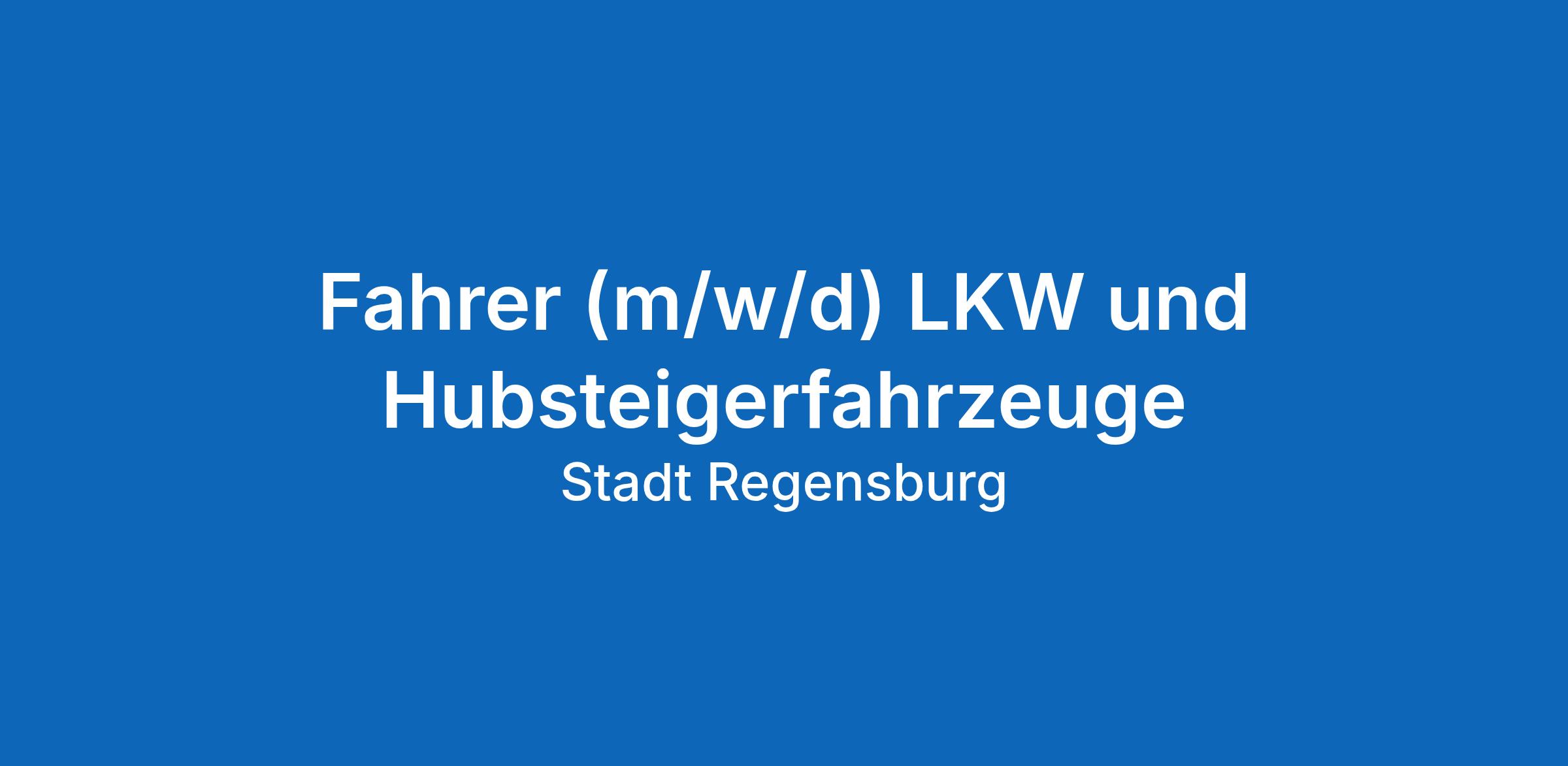 Gemeinsam mit der Stadt Regensburg die Zukunft gestalten! Wir suchen für das Tiefbauamt, Sachgebiet Straßenunterhalt, eine/-n Fahrer /-in (m/w/d) für LKW und Hubsteigerfahrzeuge für die Straßenbeleuchtung (m/w/d).