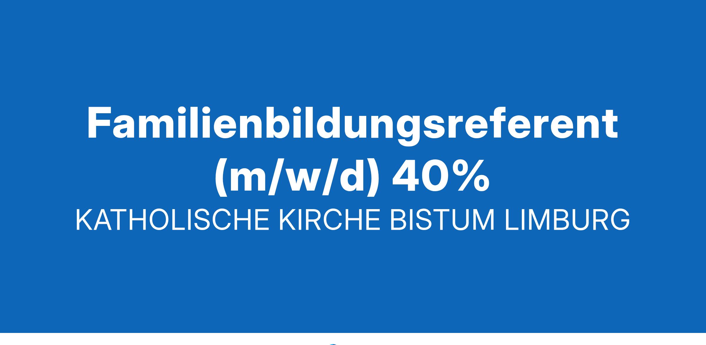 KATHOLISCHE KIRCHE BISTUM LIMBURG Lust auf einen Job in der katholischen Kirche? Wir sind ein attraktiver Arbeitgeber. Wir suchen: Familienbildungsreferent (m/w/d) 40% KFB Wiesbaden, Rheingau, Untertaunus - Wiesbaden Interesse? Dann bewerben Sie sich jetzt: bewerbung@bistumlimburg.de Informationen unter: bistumlimburg.de Suchbegriff,,Stellenbörse" Original Anzeige