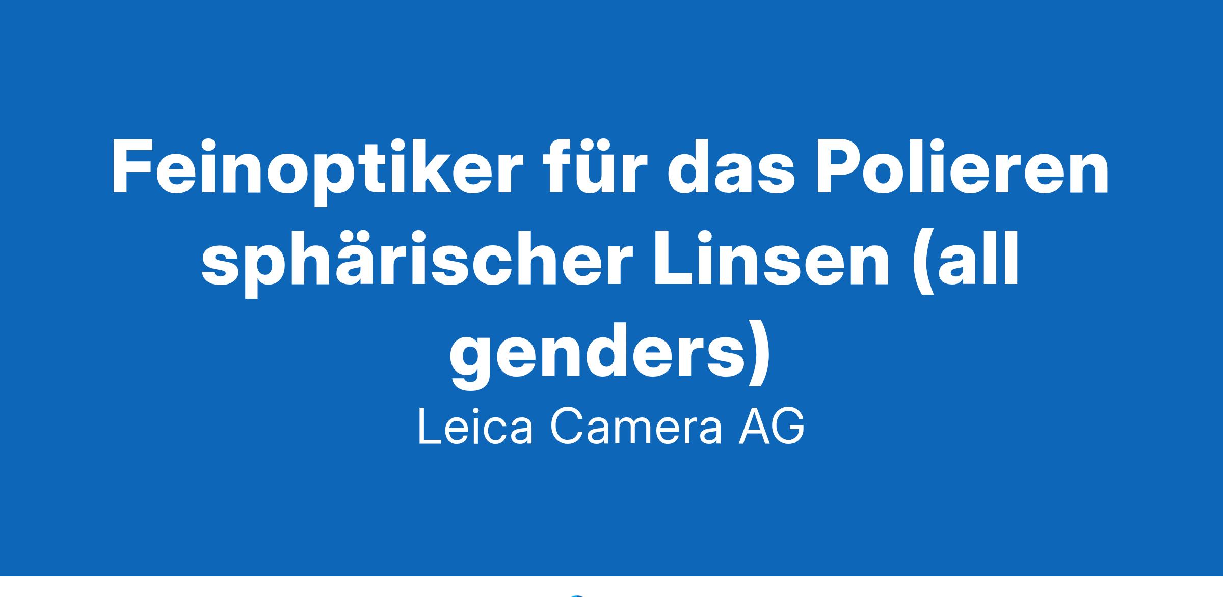 Unser anhaltender Erfolg gründet auf dem Wissen, der Professionalität und dem überdurchschnittlichen Engagement von weltweit rund 1.800 Mitarbeitenden. Diese sind im Leica Headquarter, an unserem zweiten Produktionsstandort in Portugal sowie in einem weltweiten Netzwerk eigener Länderorganisationen, Leica Retail Stores und Leica Galerien tätig.Am Standort Wetzlar (40 Minuten bis Frankfurt a. Main) suchen wir Sie ab sofort in Vollzeit als:Feinoptiker für das Polieren sphärischer Linsen (all genders)Wie die Tätigkeit aussieht:Rüsten und Bedienen von konventionellen sowie CNC-gesteuerten MaschinenBekleben und Abrichten der Poliergrundkörper von HandAnwendung verschiedener Messmittel und Messgeräte (Interferometer)Visuelle Beurteilung des Interferometerbildes nach Prüfanweisung DIN ISO 10110100% Qualitätskontrolle der Oberflächenstrukturen und ggf. Optimierung des PolierprozessesWartung und vorbeugende Instandhaltung aller Maschinen nach WartungsplanMitarbeit am kontinuierlichen Verbesserungsprozess (KVP) der AbteilungWorauf es uns ankommt:Abgeschlossene Berufsausbildung als Feinoptiker (all genders)Langjährige fachspezifische Berufserfahrung in der OptikfertigungSicherer Umgang mit den relevanten MessgerätenStarkes Qualitäts- und KostenbewusstseinZuverlässige, detailgenaue ArbeitsweiseFlexibilität und LernbereitschaftTeamfähigkeit und hohe KundenorientierungBereitschaft zur SchichtarbeitACHTUNG: Die Stelle ist zunächst befristet auf 1 JahrWodurch wir uns auszeichnen:Moderne Arbeitsumgebung - in Wetzlar und in vielen Metropolen der WeltFlexible Arbeitszeitregelung, kombiniert mit der Möglichkeit zum mobilen ArbeitenOffene, familiäre Unternehmenskultur mit viel Raum für neue IdeenStrukturiertes Onboarding-Programm und hervorragende interne EntwicklungsmöglichkeitenLast but not least: ein fair vergütetes, sicheres Arbeitsverhältnis und viele MitarbeiterrabatteNächste Schritte:Wir freuen uns sehr über jede aussagekräftige Bewerbung!Benötigte Informationen: Wunschgehalt, Kündigungsfrist und gewünschter StartterminWenn ein Profil passt, lernen wir uns zunächst per Videocall kennen und klären offene FragenBei gegenseitigem Interesse treffen wir uns danach persönlichWenn wir Ihr Interesse geweckt haben, bewerben Sie sich bitte online über den nachfolgenden Link:ONLINE BEWERBEN!