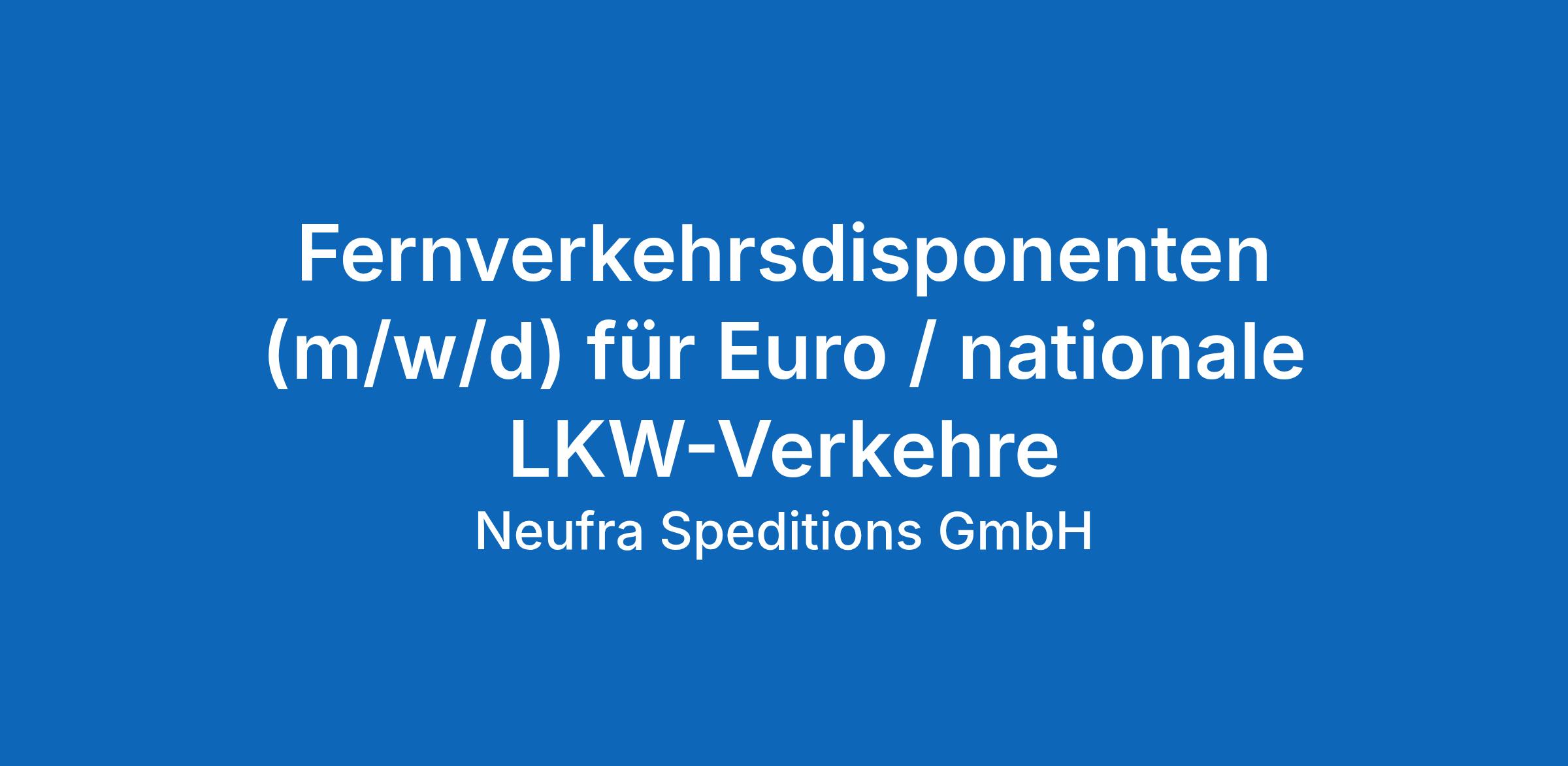 Fernverkehrsdisponenten (m/w/d) für Euro / nationale LKW-Verkehre