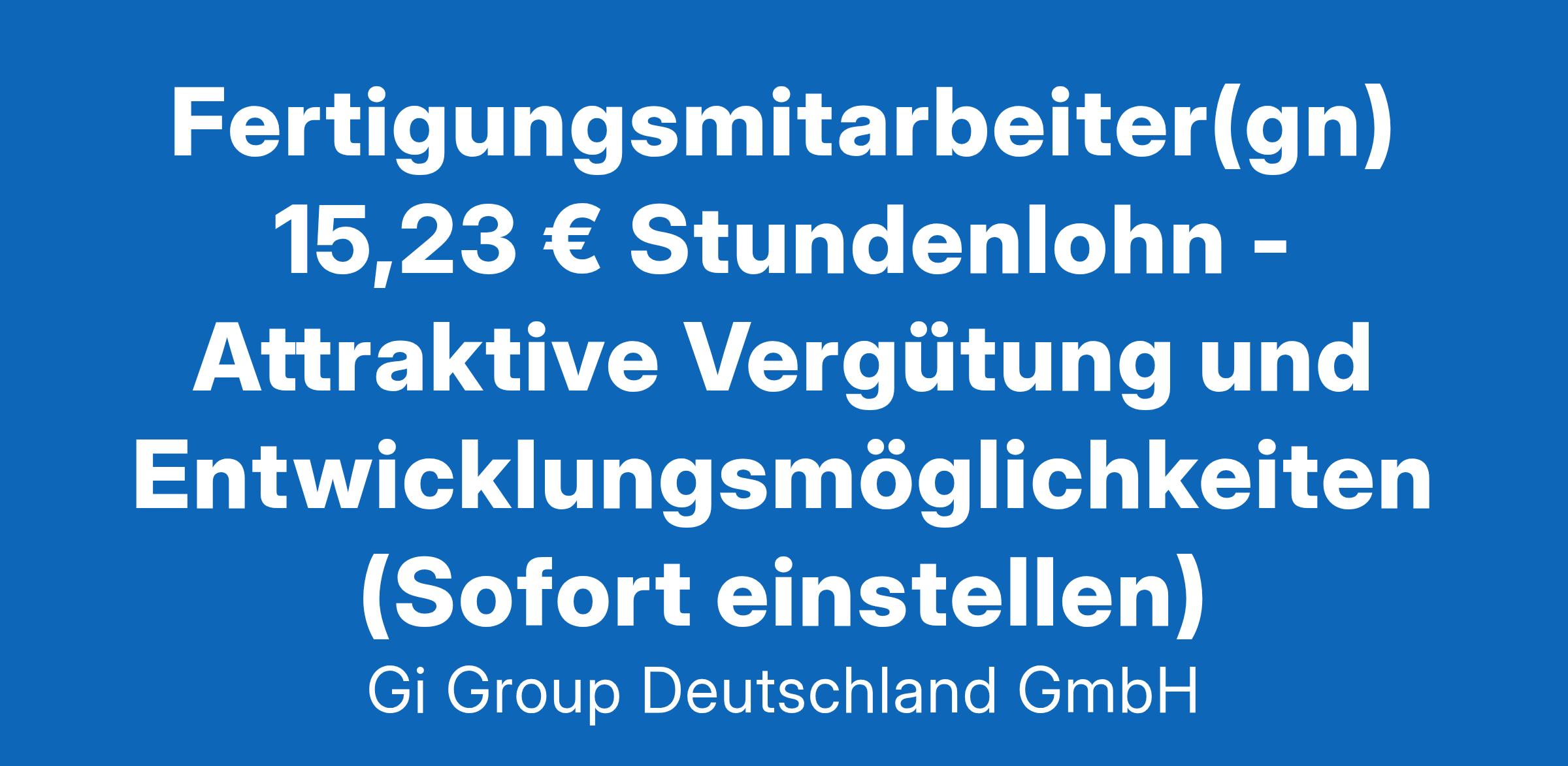 Fertigungsmitarbeiter(gn) 15,23 € Stundenlohn - Attraktive Vergütung und Entwicklungsmöglichkeiten (Sofort einstellen)