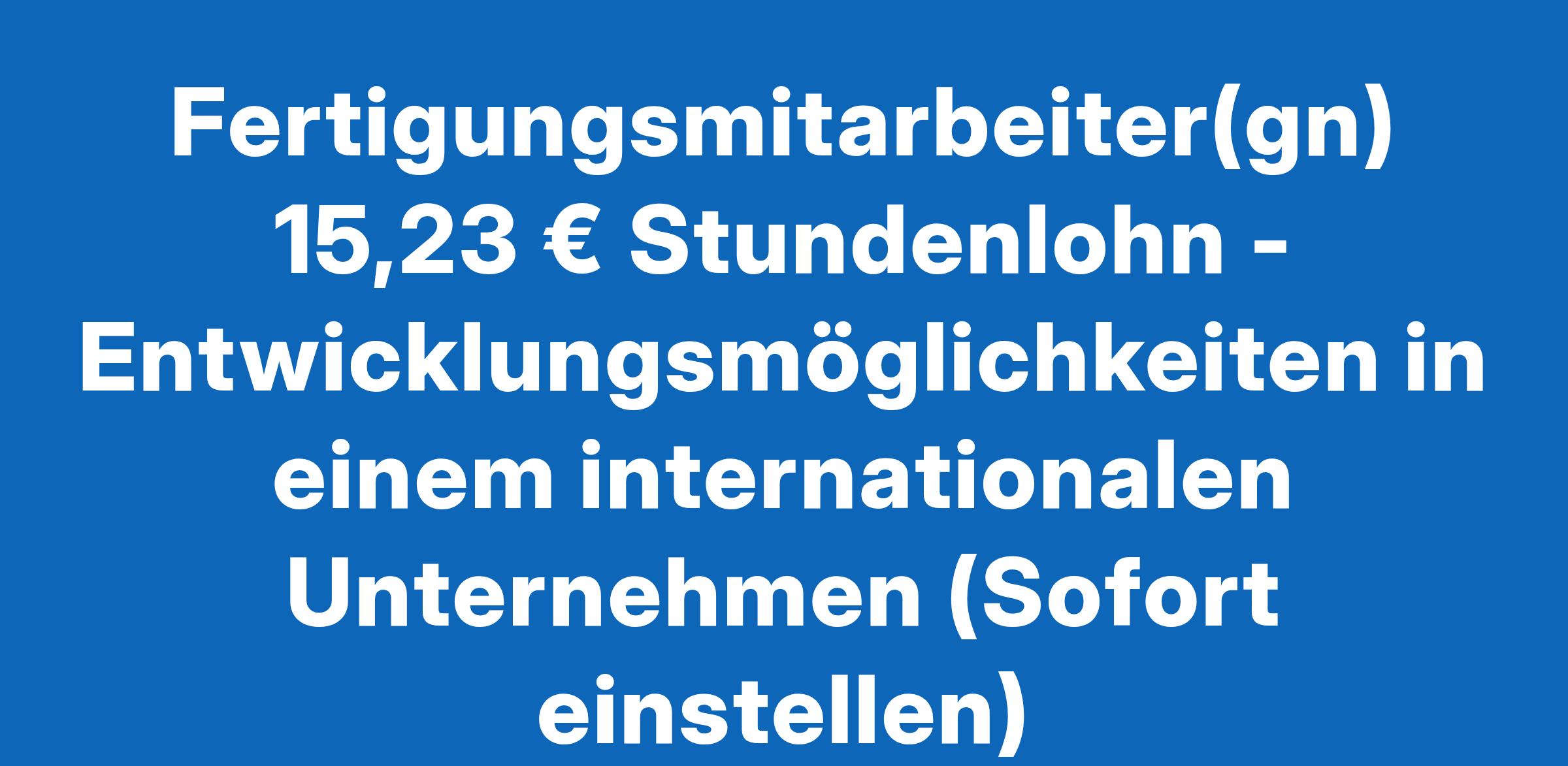 Fertigungsmitarbeiter(gn) 15,23 € Stundenlohn - Entwicklungsmöglichkeiten in einem internationalen Unternehmen (Sofort einstellen)