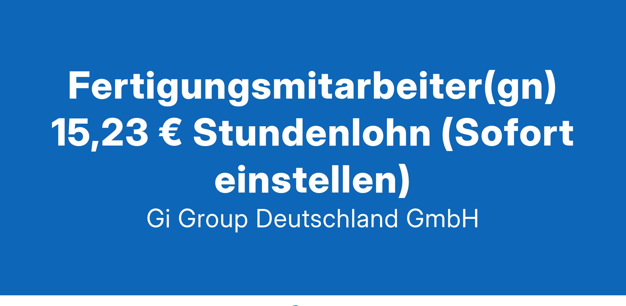 Fertigungsmitarbeiter(gn) 15,23 € Stundenlohn ab sofort in Vollzeit in Waldbronn Die Gi Group ist ein international agierender Personaldienstleister mit mehr als 500 Standorten in 40 Ländern. Unser Angebot Attraktive Vergütung ab 15,23 €/Std.steigend mit Betriebszugehörigkeit Gute Erreichbarkeit mit dem PKW und nahegelegene Parkplätze vorhanden Zahlreiche Mitarbeitervorteile in Form von Corporate Benefits  Entwicklungsmöglichkeiten mit dem Netzwerk eines internationalen Unternehmens Dein Profil als Fertigungsmitarbeiter Technisches Interesse und handwerkliches Geschick Rasche Auffassungsgabe und Qualitätsbewusstsein Bereitschaft zur Schichtarbeit  Teamfähig- und Zuverlässigkeit Deine Aufgaben Zusammenbau und Prüfung von Elektro-Modulen  Qualitätskontrolle und Überprüfung der Baugruppen Einhaltung der Qualitäts- und Zuverlässigkeitsstandards Gegebenenfalls die Datenpflege und die Dateneingabe in den Computer Deine Bewerbung Für Deine Bewerbung als Fertigungsmitarbeiter(gn) in der klicke bitte einfach auf „Jetzt bewerben“. Dort kannst Du Deine Kontaktdaten eingeben sowie Deinen Lebenslauf und Deine Bewerbungsunterlagen hochladen. Du benötigst dafür nur ca. 1 Minute. Dein zuständiger Personaldisponent wird sich bei Dir schnellstmöglich melden. Gerne kannst Du uns auch Deine Bewerbungsunterlagen per E-Mail zusenden. Wir freuen uns auf Deine Bewerbung! Unsere Stellenangebote richten sich an Arbeitssuchende jeglichen Geschlechts. (gn) = geschlechtsneutral. Kontakt Gi Group Recruiting Team