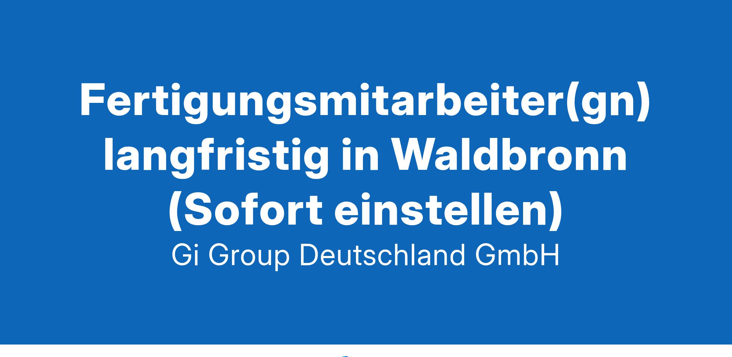 Fertigungsmitarbeiter(gn) langfristig in Waldbronn ab sofort in Vollzeit Die Gi Group ist ein international agierender Personaldienstleister mit mehr als 500 Standorten in 40 Ländern. Unser Angebot Attraktive Vergütung ab 15,23 €/Std.steigend mit Betriebszugehörigkeit Einen langfristigen Einsatz in einem unserer top Kundenunternehmen Gute Erreichbarkeit mit dem PKW und nahegelegene Parkplätze vorhanden Entwicklungsmöglichkeiten mit dem Netzwerk eines internationalen Unternehmens Dein Profil als Fertigungsmitarbeiter Erste Arbeitserfahrung in Produktionsumgebungen und Reinraum (wünschenswert) Bereitschaft in Wechselschicht (Früh- oder Spätschicht) zu arbeiten Gute Deutschkenntnisse mind. B Level in Wort und Schrift Fingerfertigkeit, Nichtraucher und kein Make-up Deine Aufgaben Herstellung von Screen Tapes  Regelmäßige Qualitätskontrollen und einfache Fehlerbehebungen Kontinuierliche Reinigung und Inspektion des Produktions-Equipments Überwachung und Sicherstellung des Materialflusses Deine Bewerbung Für Deine Bewerbung als Fertigungsmitarbeiter klicke bitte einfach auf „Jetzt bewerben“. Dort kannst Du Deine Kontaktdaten eingeben sowie Deinen Lebenslauf und Deine Bewerbungsunterlagen hochladen. Du benötigst dafür nur ca. 1 Minute. Dein zuständiger Personaldisponent wird sich bei Dir schnellstmöglich melden. Gerne kannst Du uns auch Deine Bewerbungsunterlagen per E-Mail zusenden. Wir freuen uns auf Deine Bewerbung! Unsere Stellenangebote richten sich an Arbeitssuchende jeglichen Geschlechts. (gn) = geschlechtsneutral. Kontakt Gi Group Recruiting Team