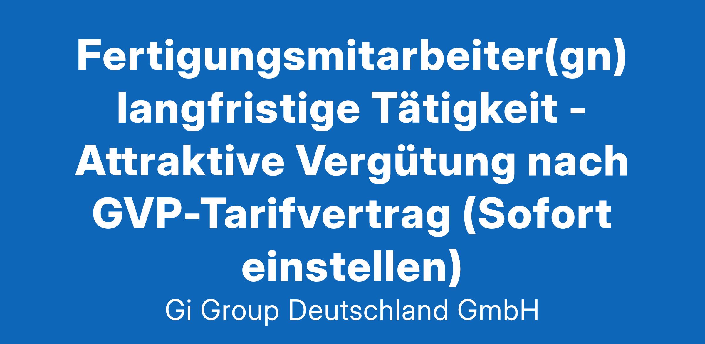 Fertigungsmitarbeiter(gn) langfristige Tätigkeit - Attraktive Vergütung nach GVP-Tarifvertrag (Sofort einstellen)