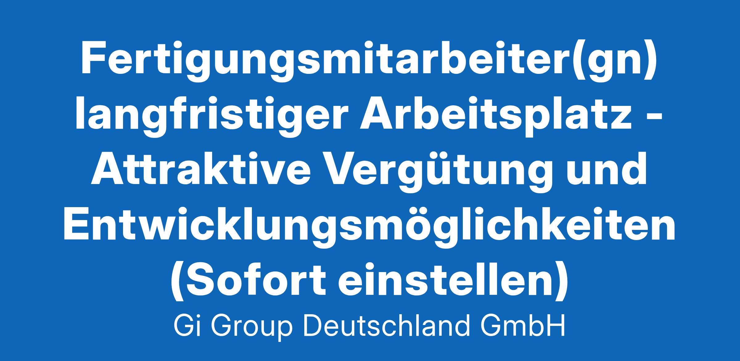 Fertigungsmitarbeiter(gn) langfristiger Arbeitsplatz ab sofort in Vollzeit in Waldbronn Die Gi Group ist ein international agierender Personaldienstleister mit mehr als 500 Standorten in 40 Ländern. Unser Angebot Attraktive Vergütung ab 15,23 €/Std.steigend mit Betriebszugehörigkeit Einen langfristigen Einsatz in einem unserer top Kundenunternehmen Gute Erreichbarkeit mit dem PKW und nahegelegene Parkplätze vorhanden Entwicklungsmöglichkeiten mit dem Netzwerk eines internationalen Unternehmens Dein Profil als Fertigungsmitarbeiter Erste Arbeitserfahrung in Produktionsumgebungen und Reinraum (wünschenswert) Bereitschaft in Wechselschicht (Früh- oder Spätschicht) zu arbeiten Gute Deutschkenntnisse mind. B Level in Wort und Schrift Fingerfertigkeit, Nichtraucher und kein Make-up Deine Aufgaben Herstellung von Screen Tapes Regelmäßige Qualitätskontrollen und einfache Fehlerbehebungen Kontinuierliche Reinigung und Inspektion des Produktions-Equipments Überwachung und Sicherstellung des Materialflusses Deine Bewerbung Für Deine Bewerbung als Fertigungsmitarbeiter klicke bitte einfach auf „Jetzt bewerben“. Dort kannst Du Deine Kontaktdaten eingeben sowie Deinen Lebenslauf und Deine Bewerbungsunterlagen hochladen. Du benötigst dafür nur ca. 1 Minute. Dein zuständiger Personaldisponent wird sich bei Dir schnellstmöglich melden. Gerne kannst Du uns auch Deine Bewerbungsunterlagen per E-Mail zusenden. Wir freuen uns auf Deine Bewerbung! Unsere Stellenangebote richten sich an Arbeitssuchende jeglichen Geschlechts. (gn) = geschlechtsneutral. Kontakt Gi Group Recruiting Team