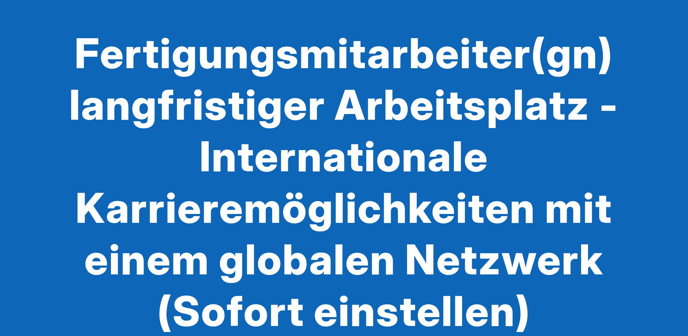 Fertigungsmitarbeiter(gn) langfristiger Arbeitsplatz - Internationale Karrieremöglichkeiten mit einem globalen Netzwerk (Sofort einstellen)